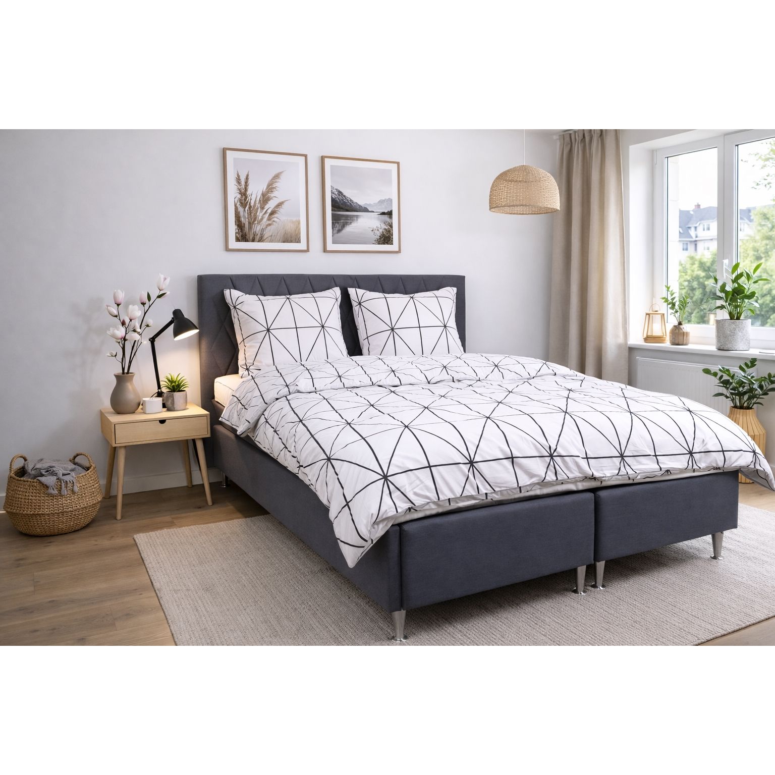 Både dynebetræk og pudebetræk lukkes med praktisk lynlås, så sengesættet ligger pænt hele natten.