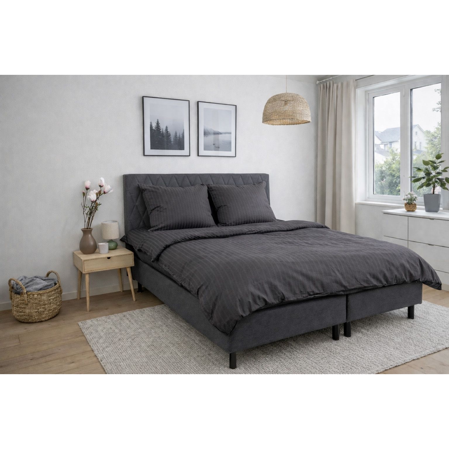 Sengetøj - 100% bomuldssatin - Klassisk mørkegrå striber