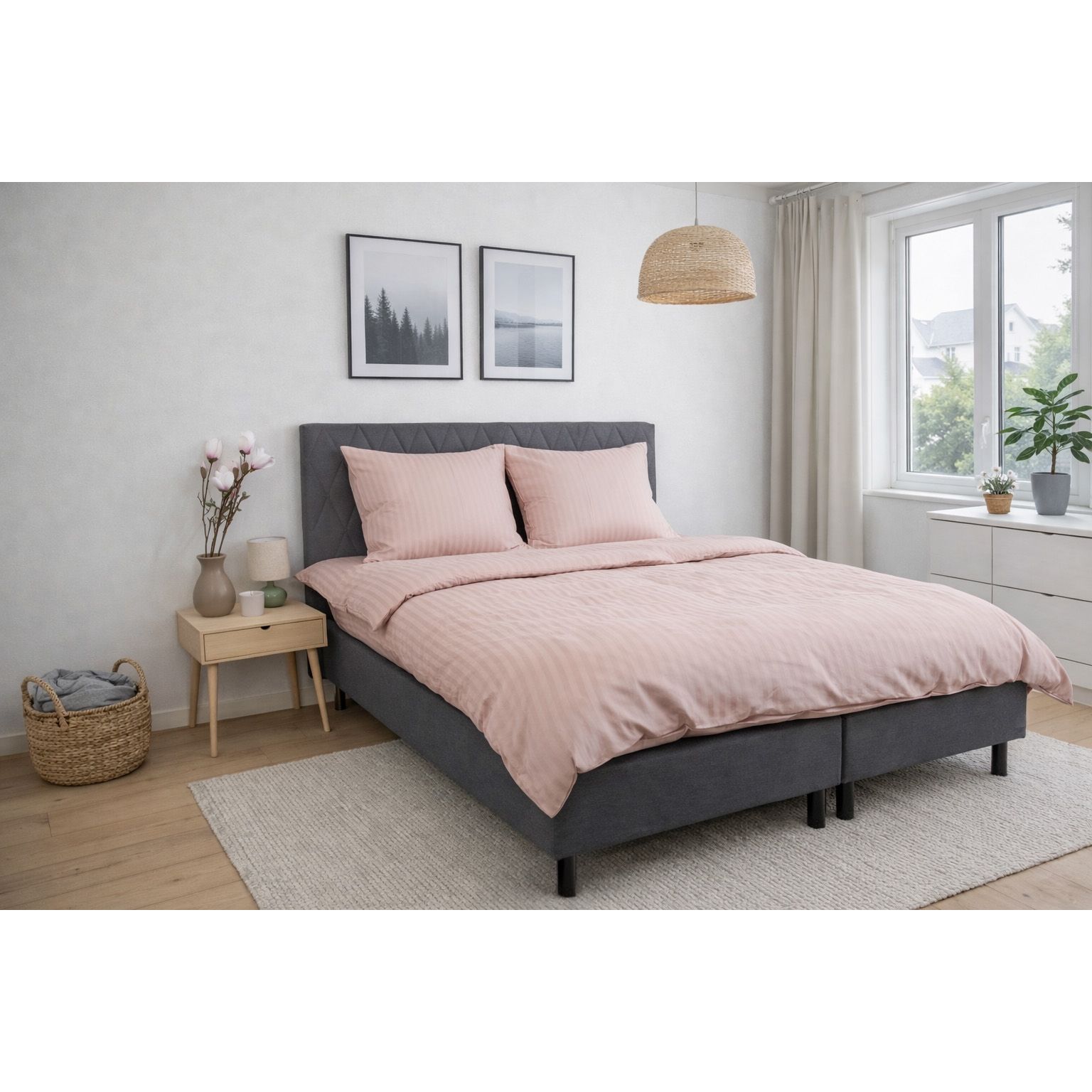 De jacquardvævede striber er vævet direkte ind i stoffet og skaber et diskret spil mellem matte og blanke flader. Denne væveteknik giver sengetøjet struktur og dybde uden brug af print og sikrer, at mønsteret forbliver flot og ensartet, selv efter gentagen vask. Det ensfarvede design gør det nemt at få sengesættet til at passe ind i alle former for indretning.