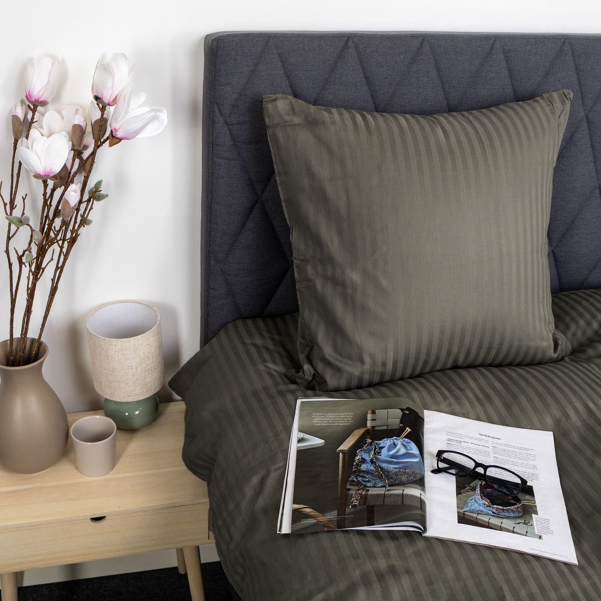 Skab et elegant og eksklusivt udtryk i soveværelset med dette olivenfarvet stribet sengetøj i 100% bomuldssatin. Sengetøjet kombinerer klassisk design med høj komfort og er skabt til dig, der ønsker både luksus og funktionalitet i hverdagen.