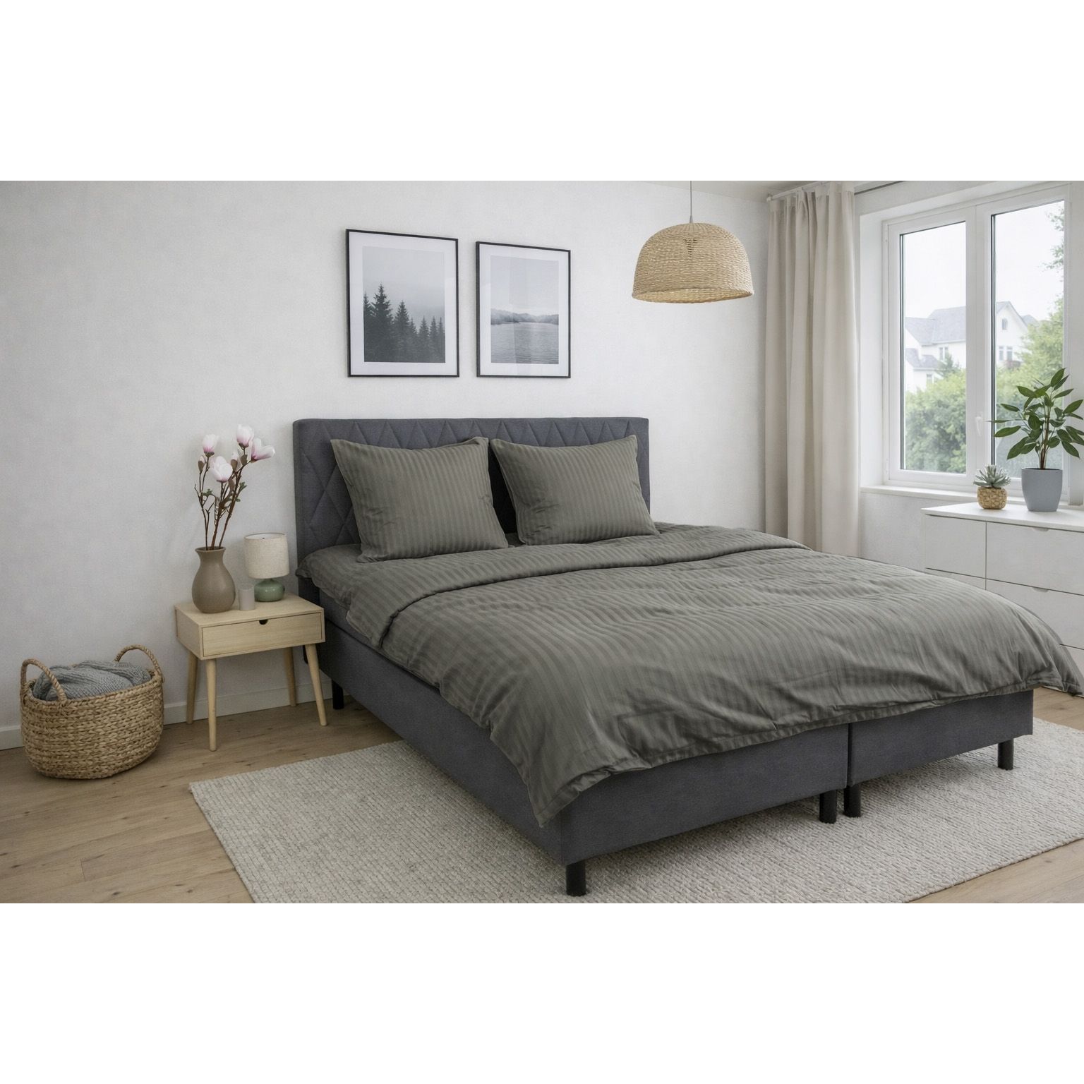 De jacquardvævede striber er vævet direkte ind i stoffet og skaber et diskret spil mellem matte og blanke flader. Denne væveteknik giver sengetøjet struktur og dybde uden brug af print og sikrer, at mønsteret forbliver flot og ensartet, selv efter gentagen vask. Det ensfarvede design gør det nemt at få sengesættet til at passe ind i alle former for indretning.
