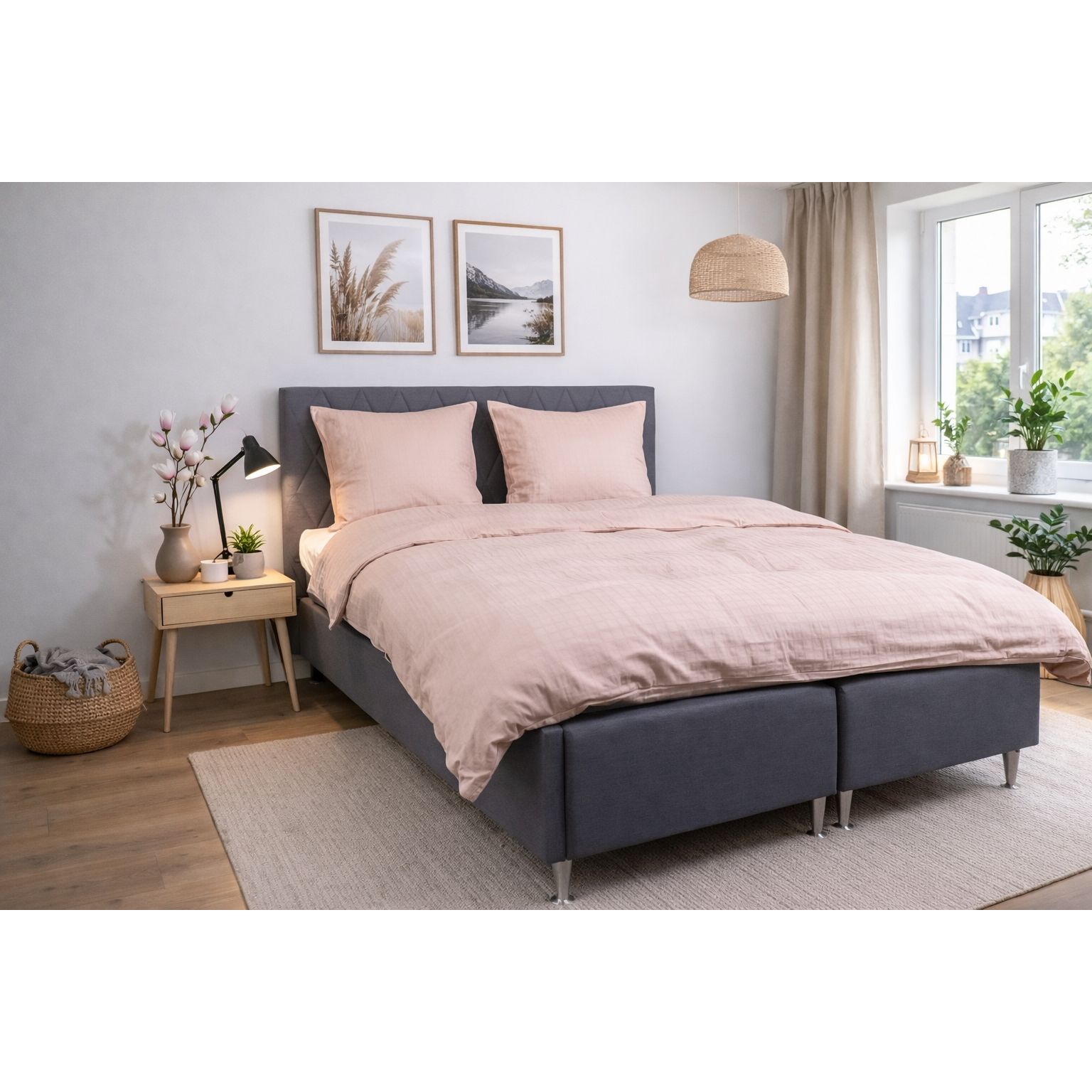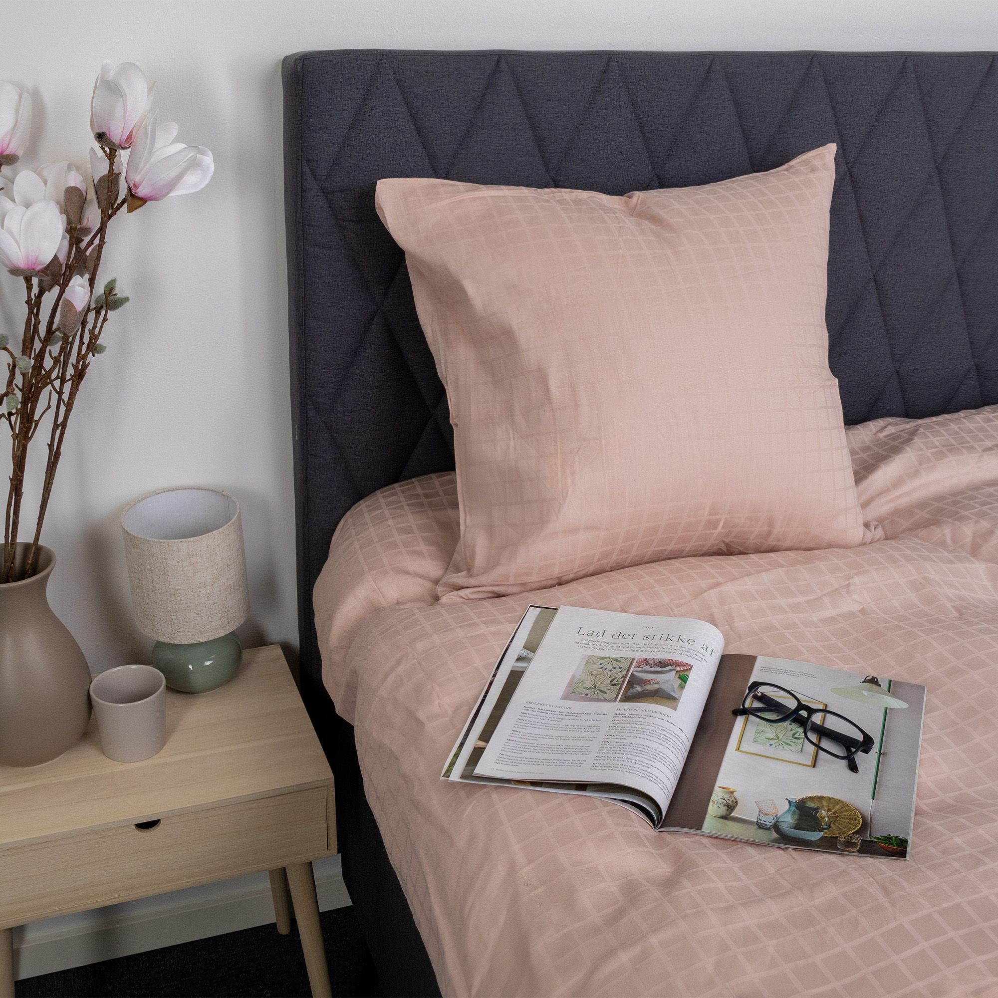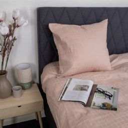 De rosa firkanter giver et moderne og sofistikeret look, der passer perfekt ind i både minimalistiske og klassiske soveværelser. Dyne- og pudebetræk lukkes med skjult lynlås, som giver et pænt finish og holder dynen sikkert på plads.