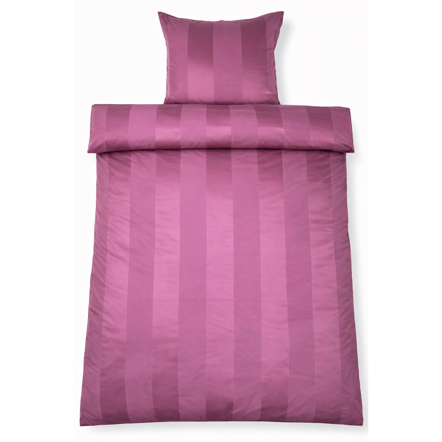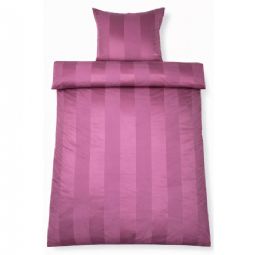 Skab en eksklusiv hotelstemning i soveværelset med dette blommefarvet stribede sengetøj i 100% bomuldssatin. Det elegante design med brede jacquardvævede striber kombinerer tidløs minimalisme med luksuriøs komfort og er perfekt til dig, der ønsker et stilrent og indbydende sovemiljø.