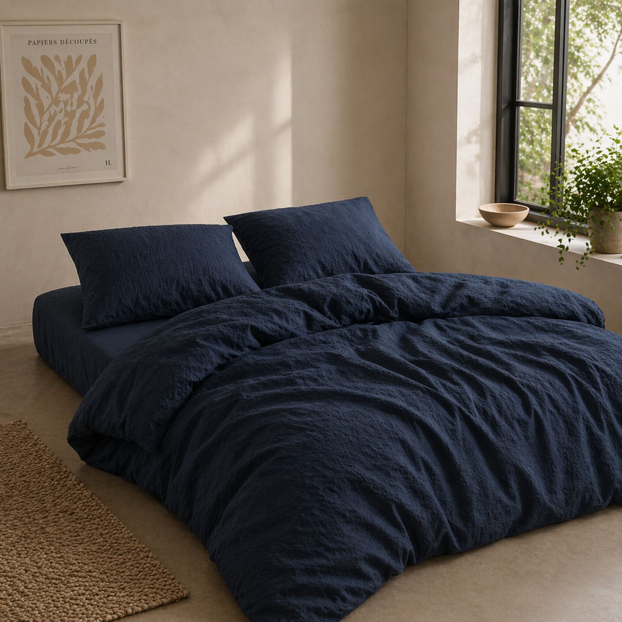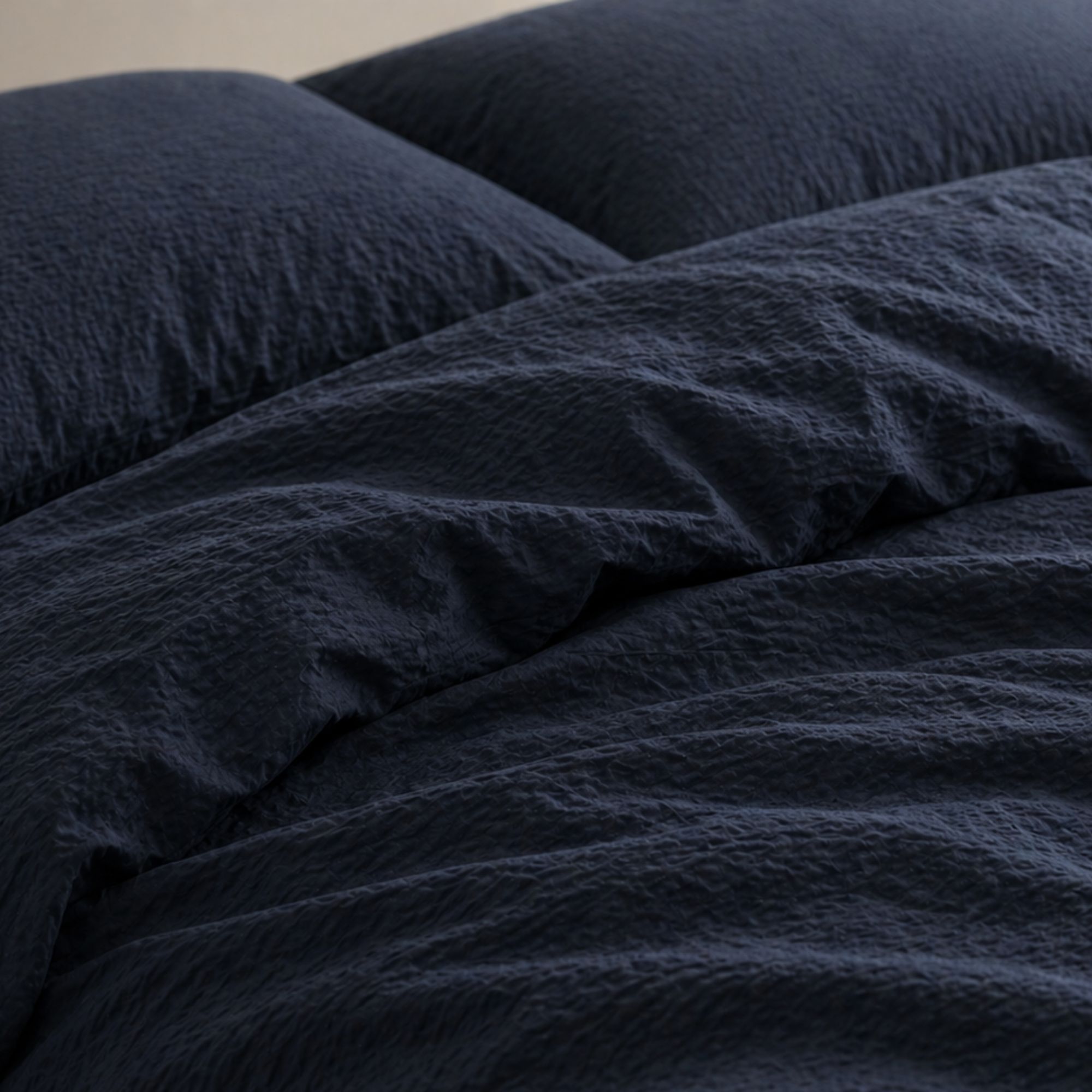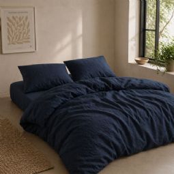 Bæk og bølge vævningen danner små luftlommer i stoffet, hvilket gør sengetøjet ekstra åndbart og let at sove i. Overfladen føles køligere mod huden end traditionelt glat sengetøj og er derfor særligt velegnet til varme nætter eller til dig, der ofte får det varmt, når du sover. Samtidig bevarer bomulden sin naturlige blødhed og evne til at absorbere fugt, så du får en behagelig og tør sovekomfort. Sengetøjet har en trådtæthed på 200TC, som sikrer en god balance mellem holdbarhed, komfort og blødhed. Den vaflede struktur gør, at sengetøjet ikke behøver at blive strøget for at se pænt ud - det karakteristiske udtryk er en naturlig del af designet.