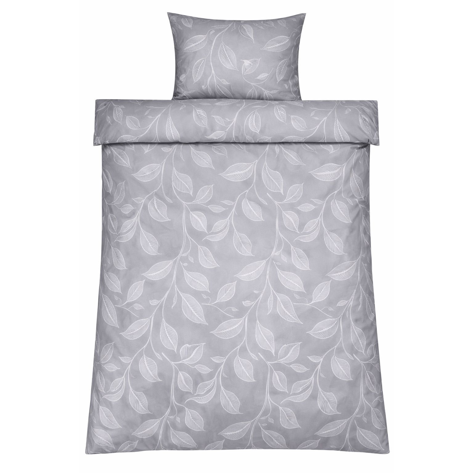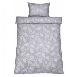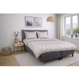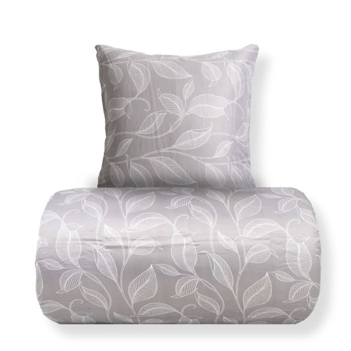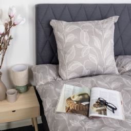 Sengetøj 140x200 cm - Satin - Sandfarvet print af blade