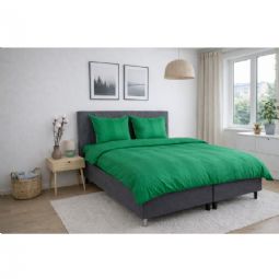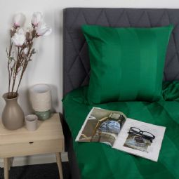Sengetøj 140x200 cm - 100% bomuldssatin - Lone - Grønne jacquardvævet striber