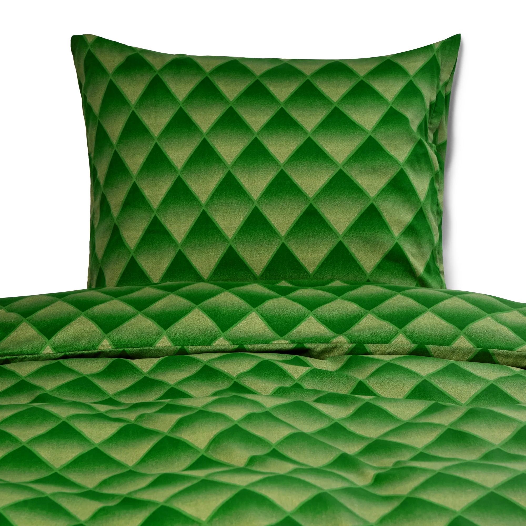 Giv soveværelset et eksklusivt og moderne udtryk med dette grønne harlekin sengetøj i 100% bomuldssatin. Det graduerede diamantmønster skaber en flot 3D effekt, hvor farverne glider harmonisk over i hinanden og giver sengen dybde og karakter. Et sengesæt, der både tilføjer personlighed og elegance til din indretning.