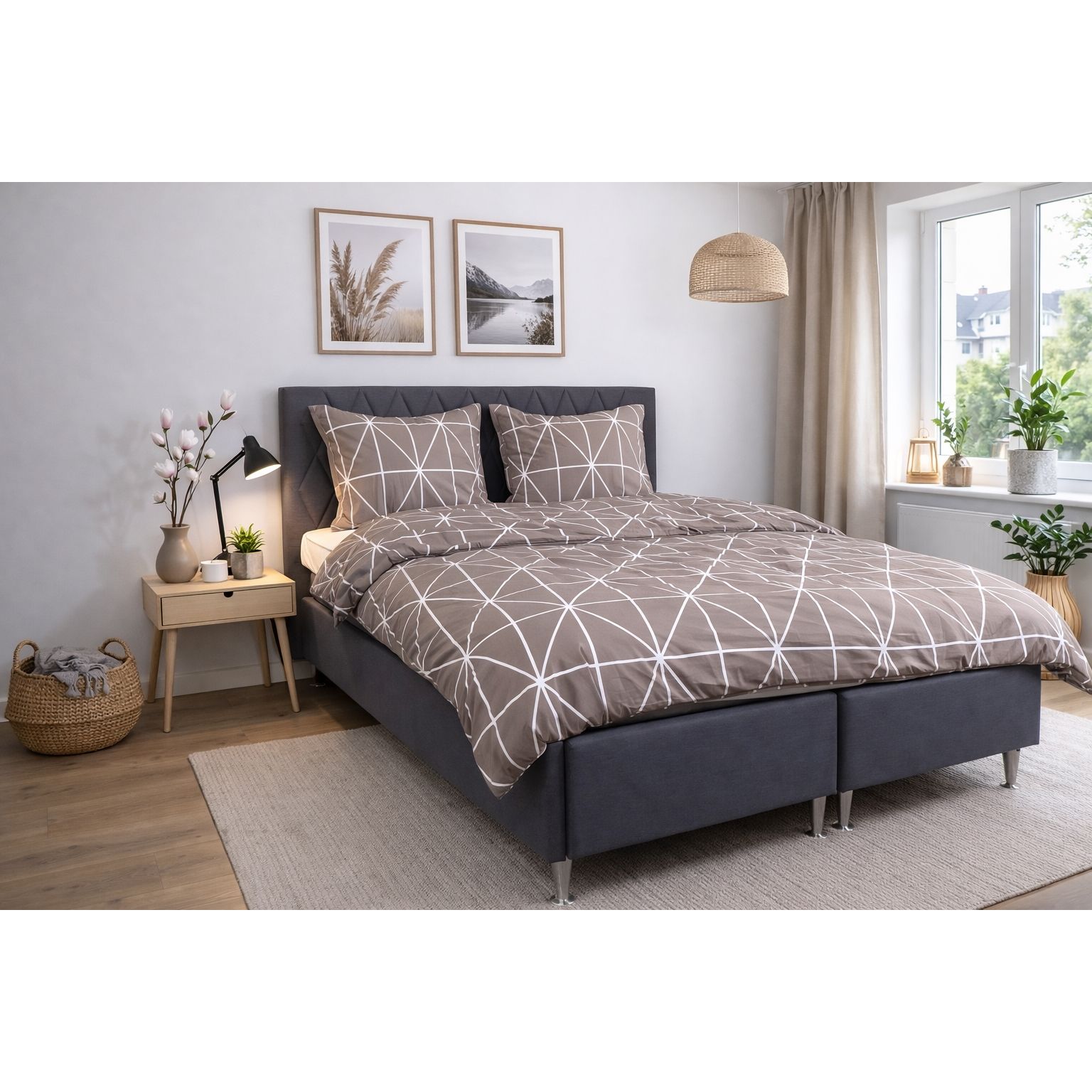 Giv soveværelset et stilrent og roligt udtryk med dette elegante sengetøj i bomuld fra Nordstrand Home. Det klassiske harlekin design i grå skaber en harmonisk atmosfære og passer perfekt ind i både moderne og nordisk indretning.
