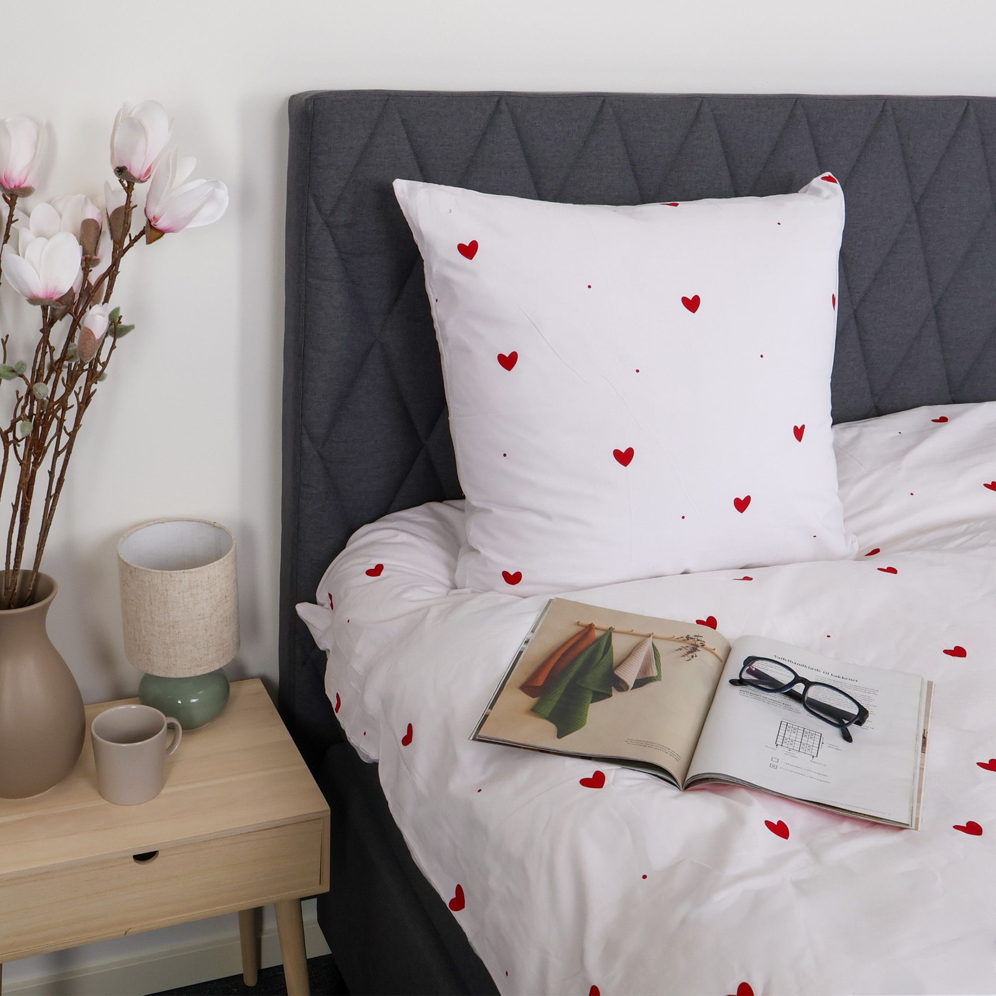 Giv soveværelset et stilrent og roligt udtryk med dette elegante sengetøj i bomuld fra Nordstrand Home. Det søde hjerte design skaber en harmonisk atmosfære og passer perfekt ind i både moderne og nordisk indretning.