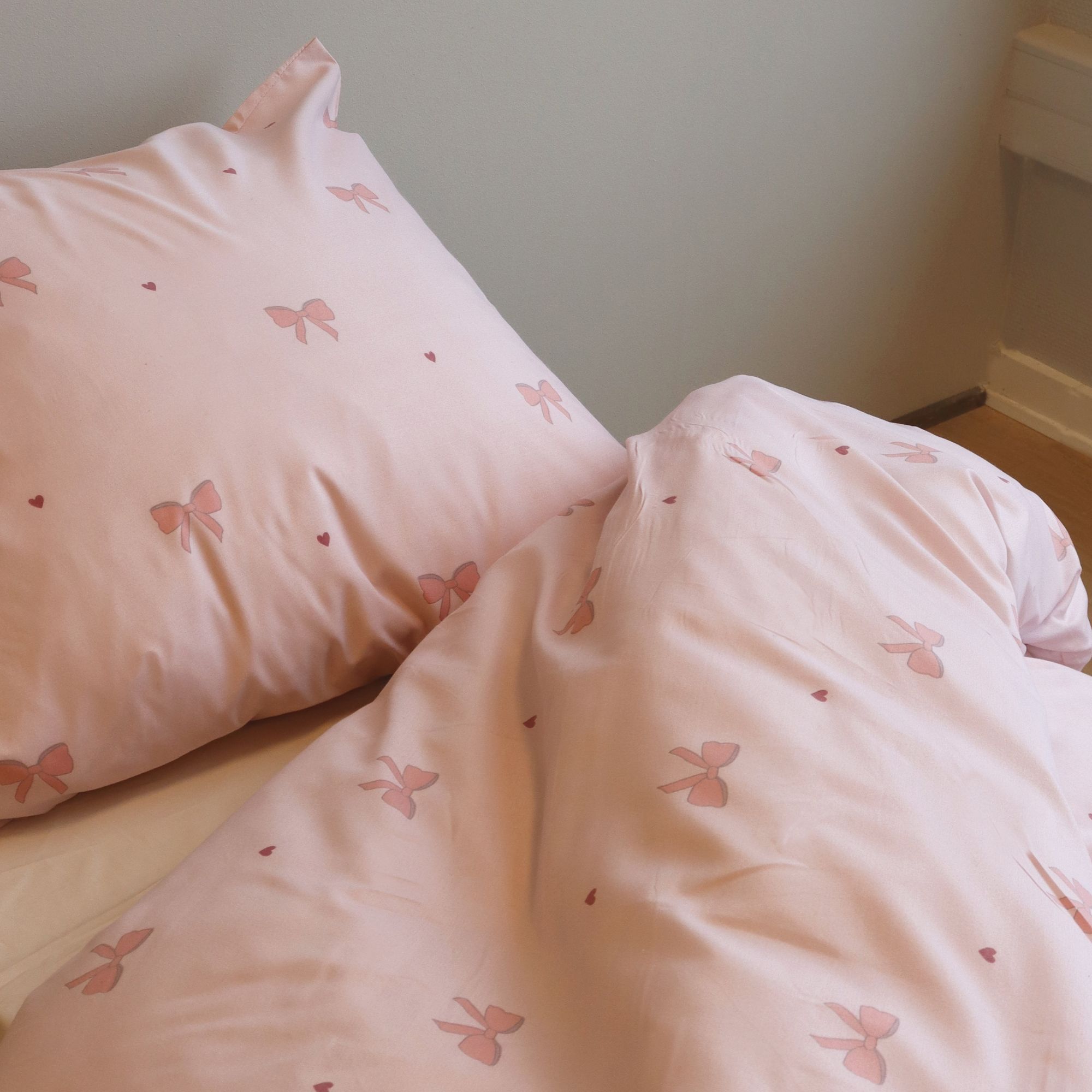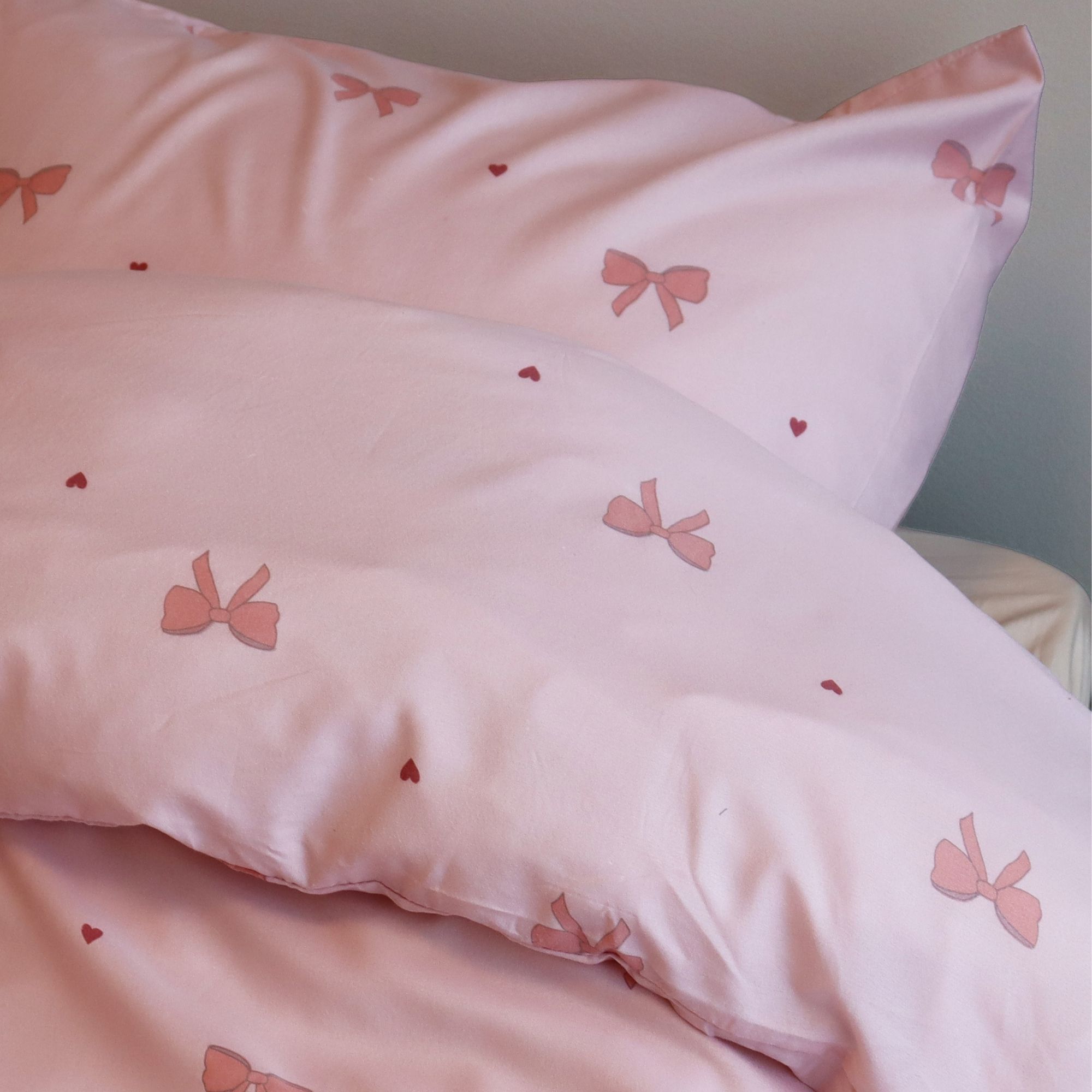 Frisk soveværelset op med et flot og praktisk sengesæt i 100% microfiber med et elegant print af sløjfer og små hjerter. Microfiber er et populært valg for dig, der ønsker blødt, let og funktionelt sengetøj, som er nemt at vedligeholde i hverdagen.