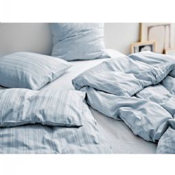 Drømmer du om ægte hotelstemning i soveværelset? Med dette luksuriøse damaskvævede sengetøj fra Södahl får du en kombination af elegant design, god komfort og høj kvalitet. Det stilrene stribede design i en smuk blå farve giver et roligt og eksklusivt udtryk, der passer perfekt ind i det nordisk inspireret hjem.