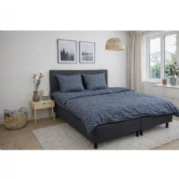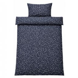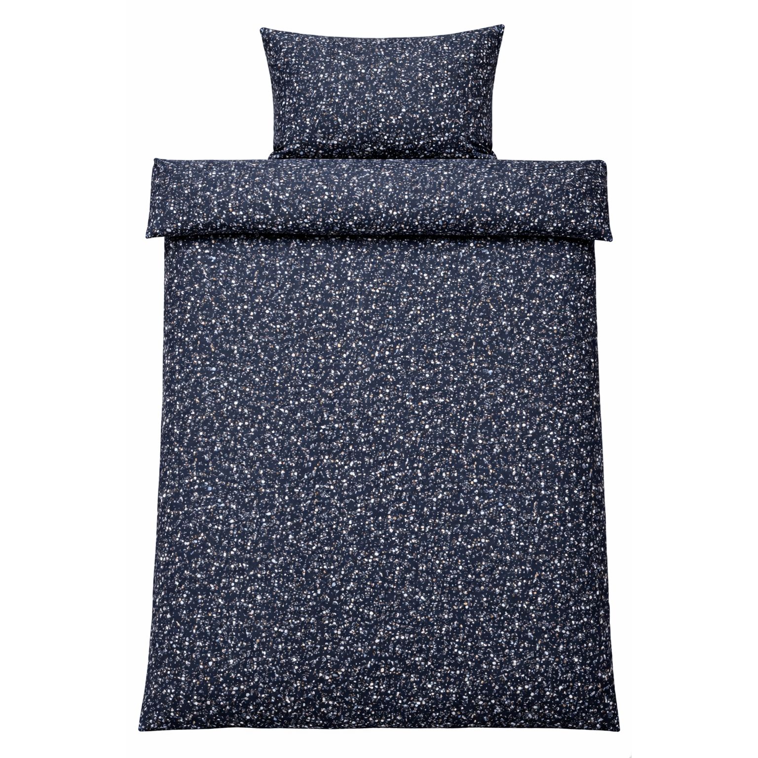 Sengetøj 140x200 cm - Bomuldssatin - Blåt marble/prikket print