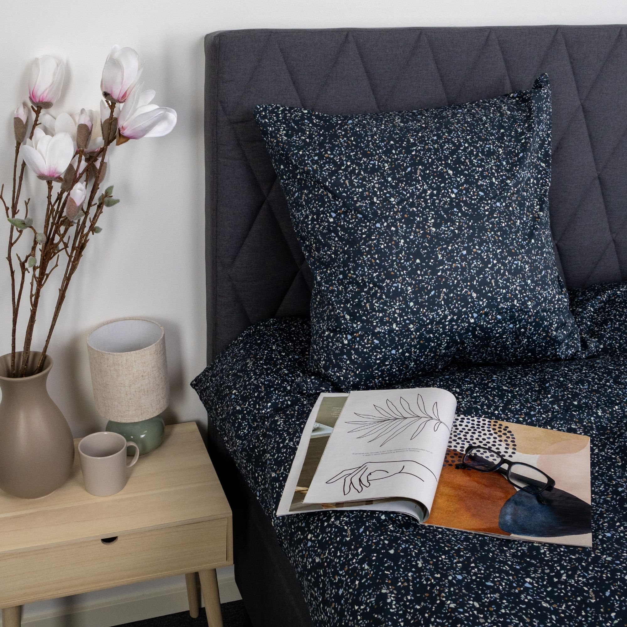 Sengetøj - Bomuldssatin - Blåt marble/prikket print Sengetøj - Bomuldssatin - Blåt marble/prikket print