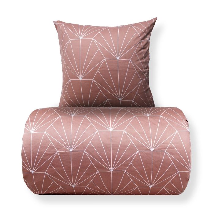 Det vendbare design giver dig to forskellige looks i ét sengesæt. Forsiden er dekoreret med et moderne grafisk mønster, mens bagsiden har et mere afdæmpet geometrisk udtryk. Det gør sengetøjet nemt at kombinere med forskellige farver, puder og plaider og giver større fleksibilitet i indretningen.