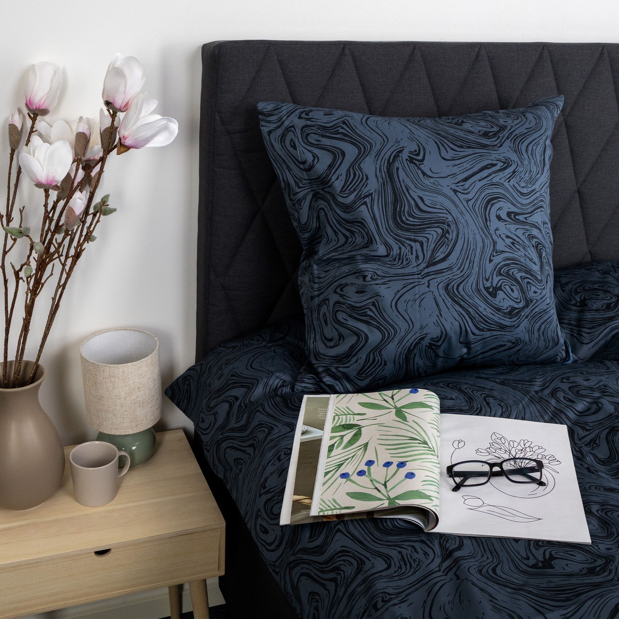 Sengetøj i 100% bomuldssatin - marble print