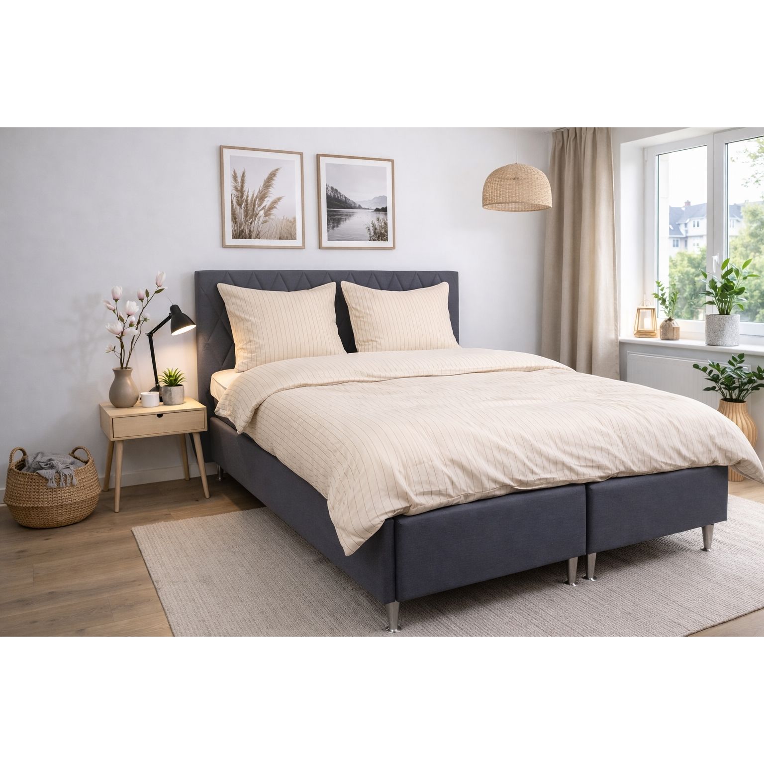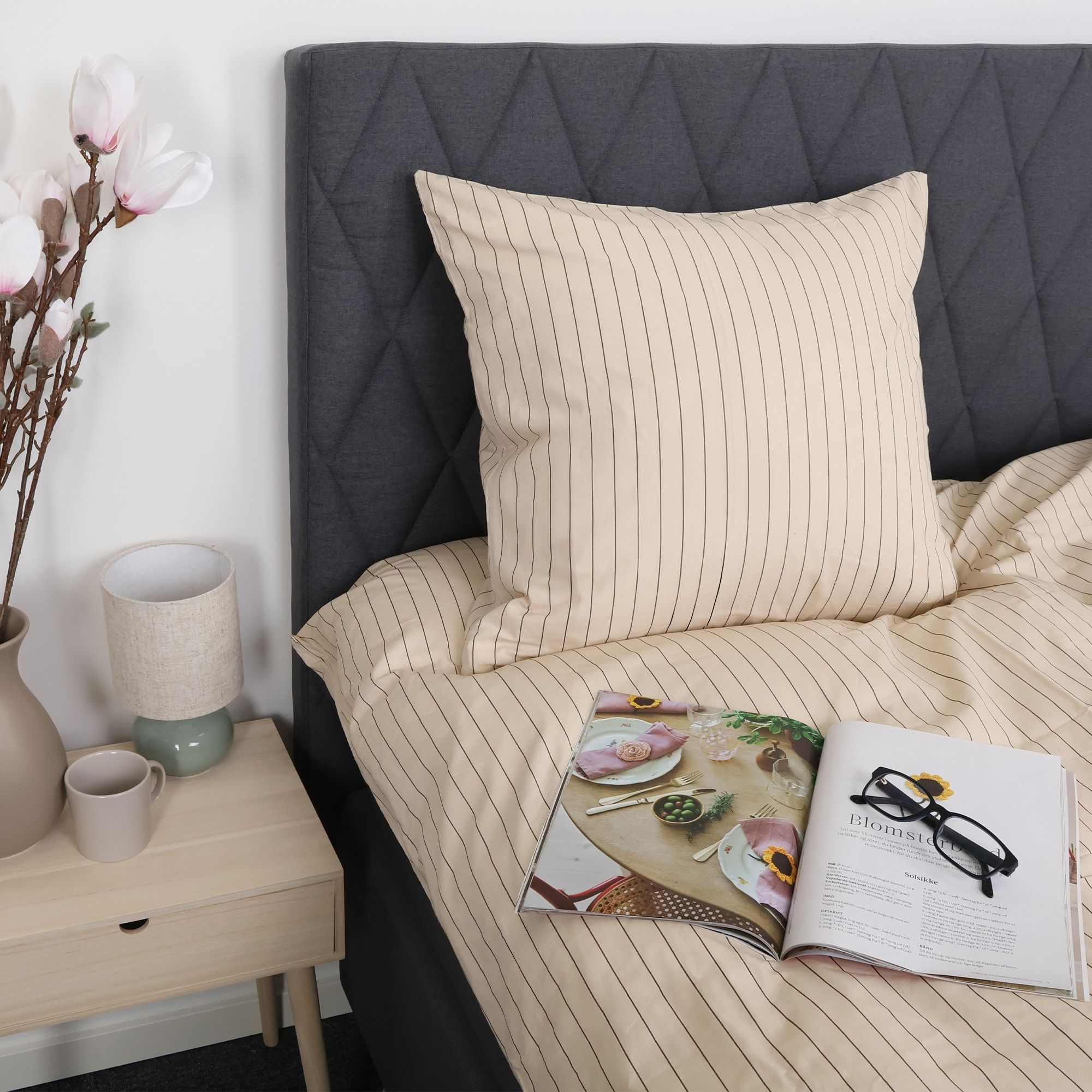Sengetøj 140x220 cm - 100% bomuld - Sandfarvet med brune striber