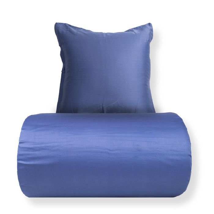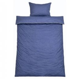 Sengetøj 140x220 cm - 100% bomuldssatin - Blå med lyseblå pipingkant