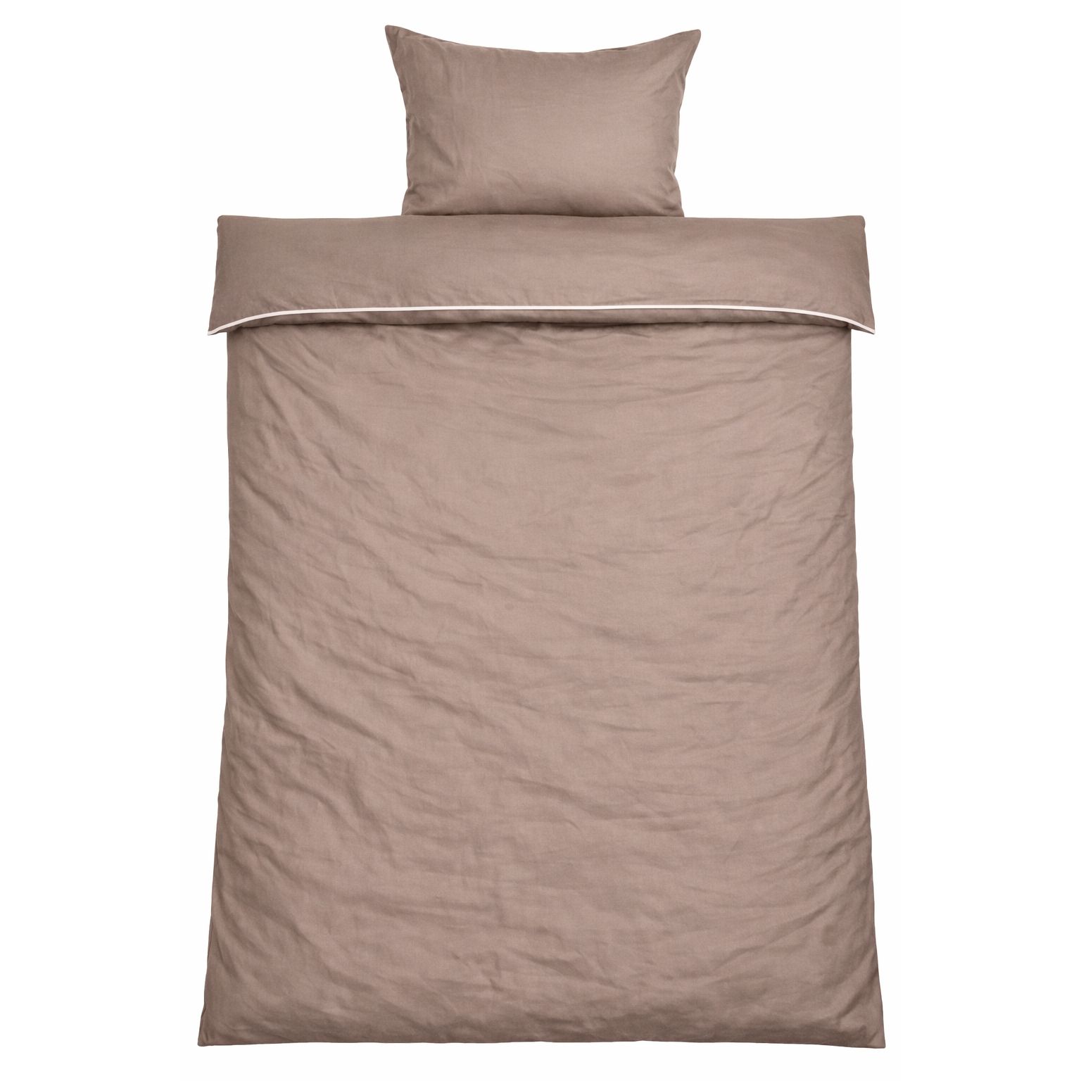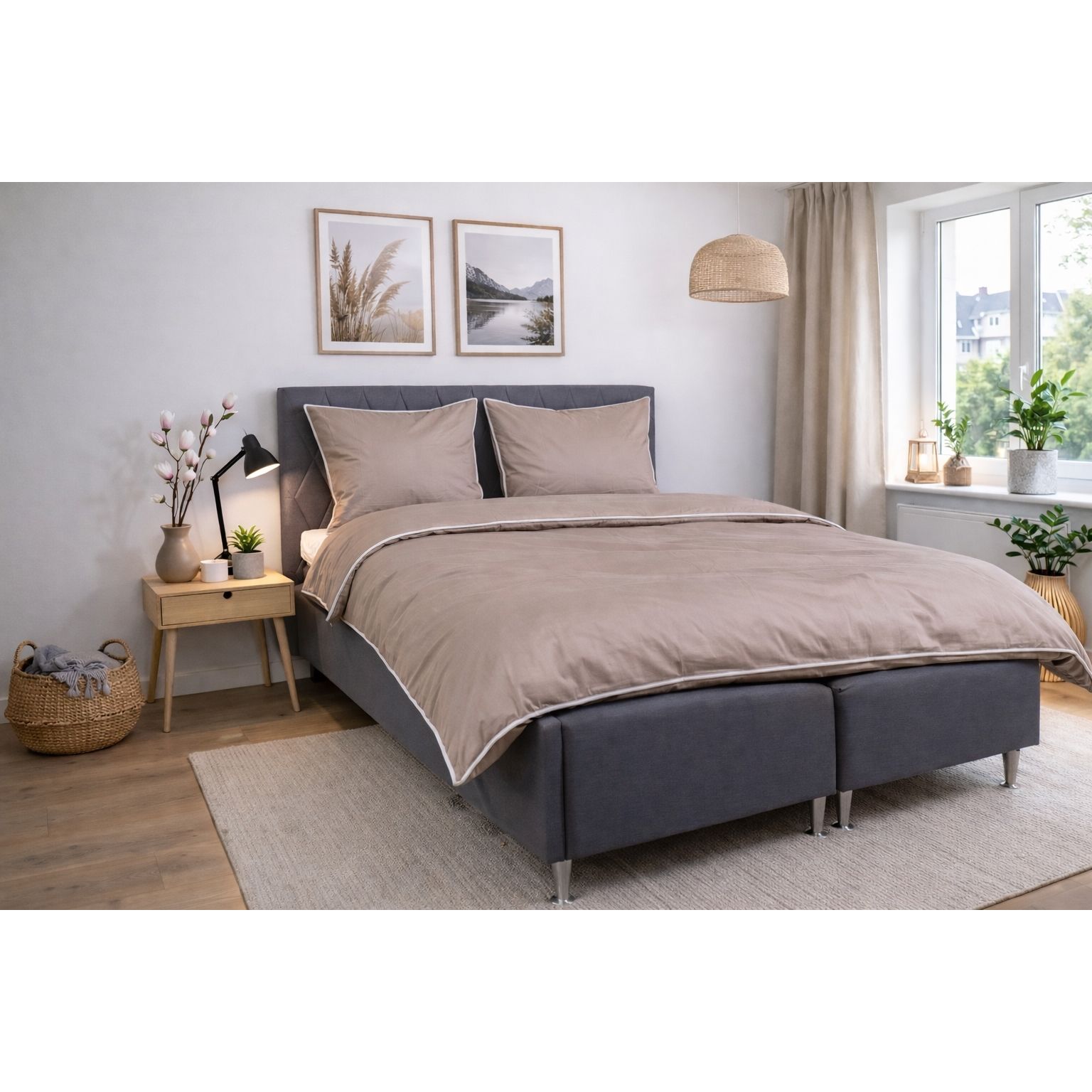 Sengetøj 140x220 cm - 100% bomuldssatin - Grå med lysegrå pipingkant