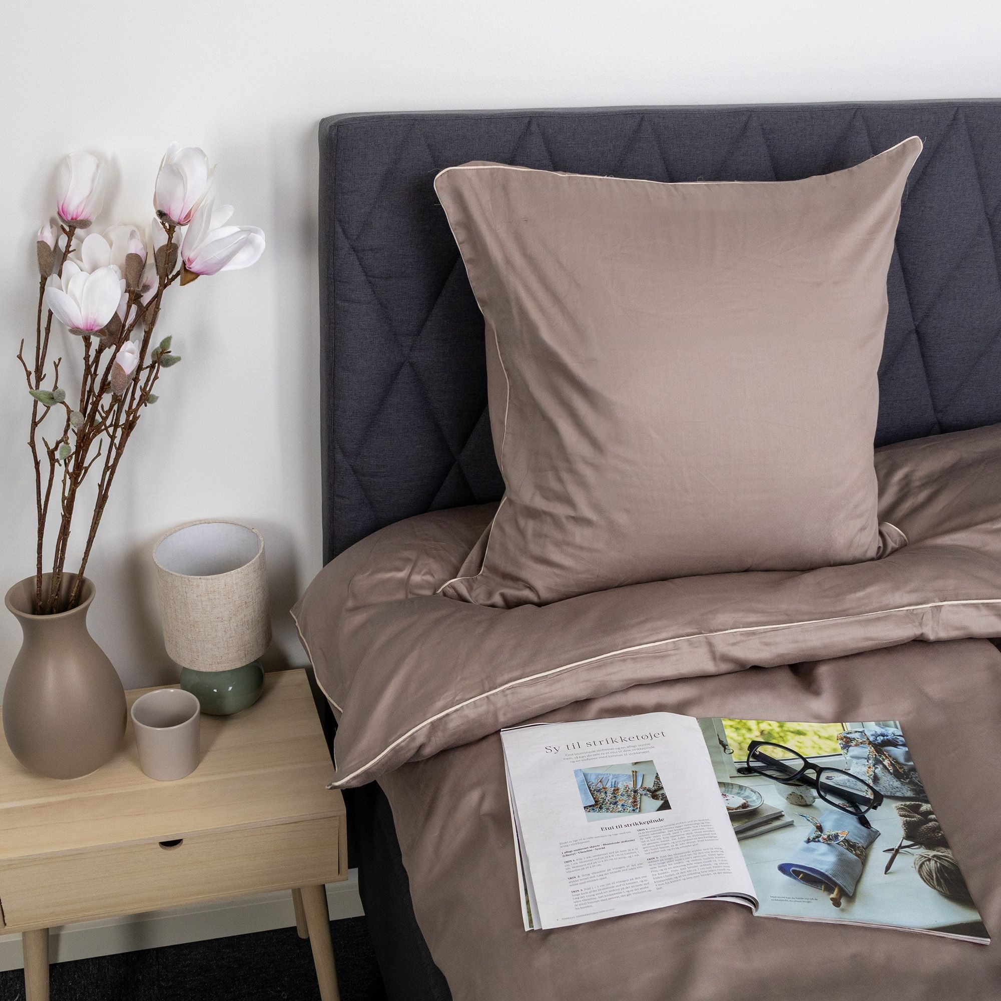 Skab et elegant og luksuriøst udtryk i soveværelset med dette eksklusive sengesæt i 100% bomuldssatin med dekorativ pipingkant fra By Borg. Det ensfarvede design i dyb grå kombineret med en lysere pipingkant tilfører et stilrent og sofistikeret look, der løfter helhedsindtrykket i soveværelset.