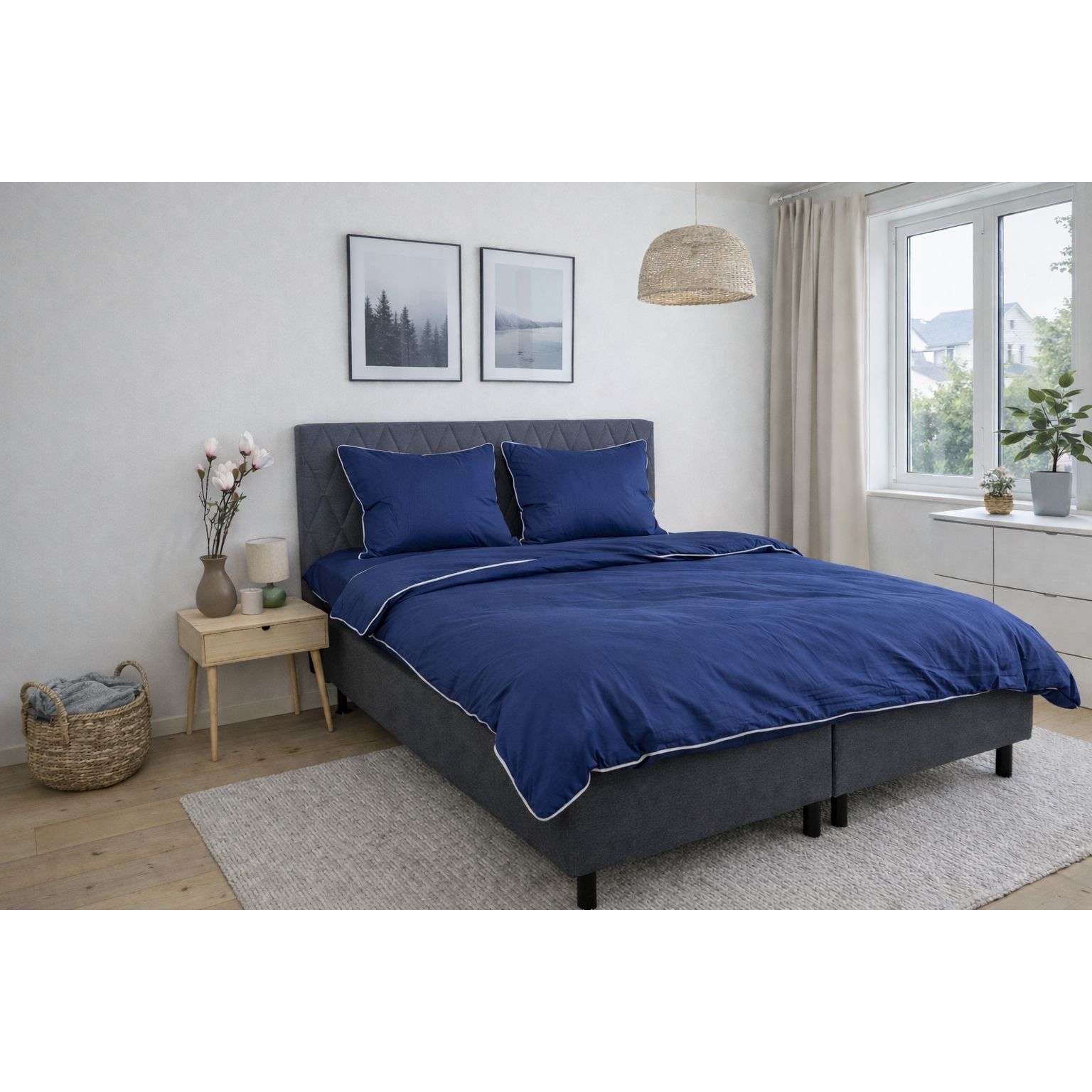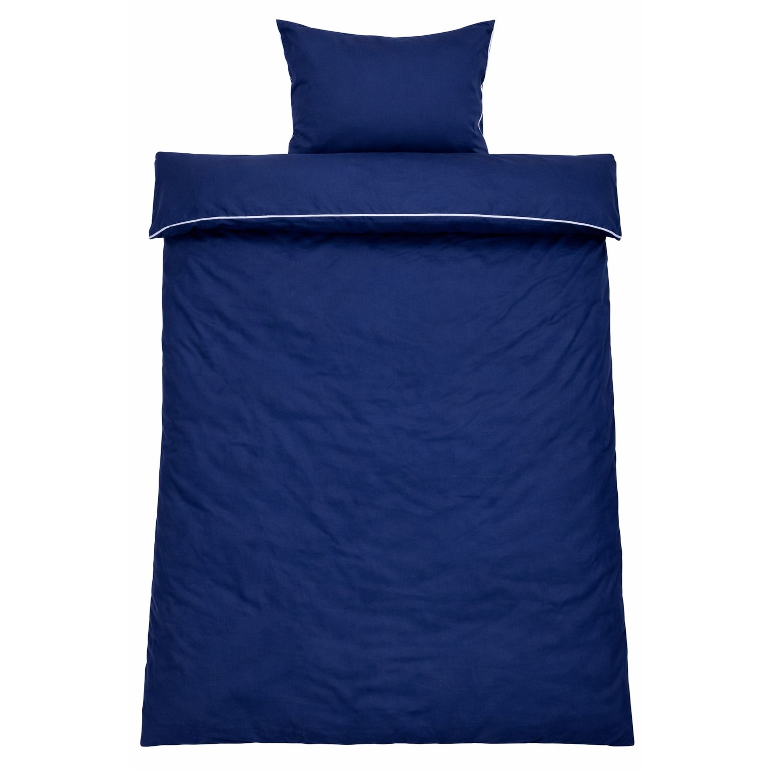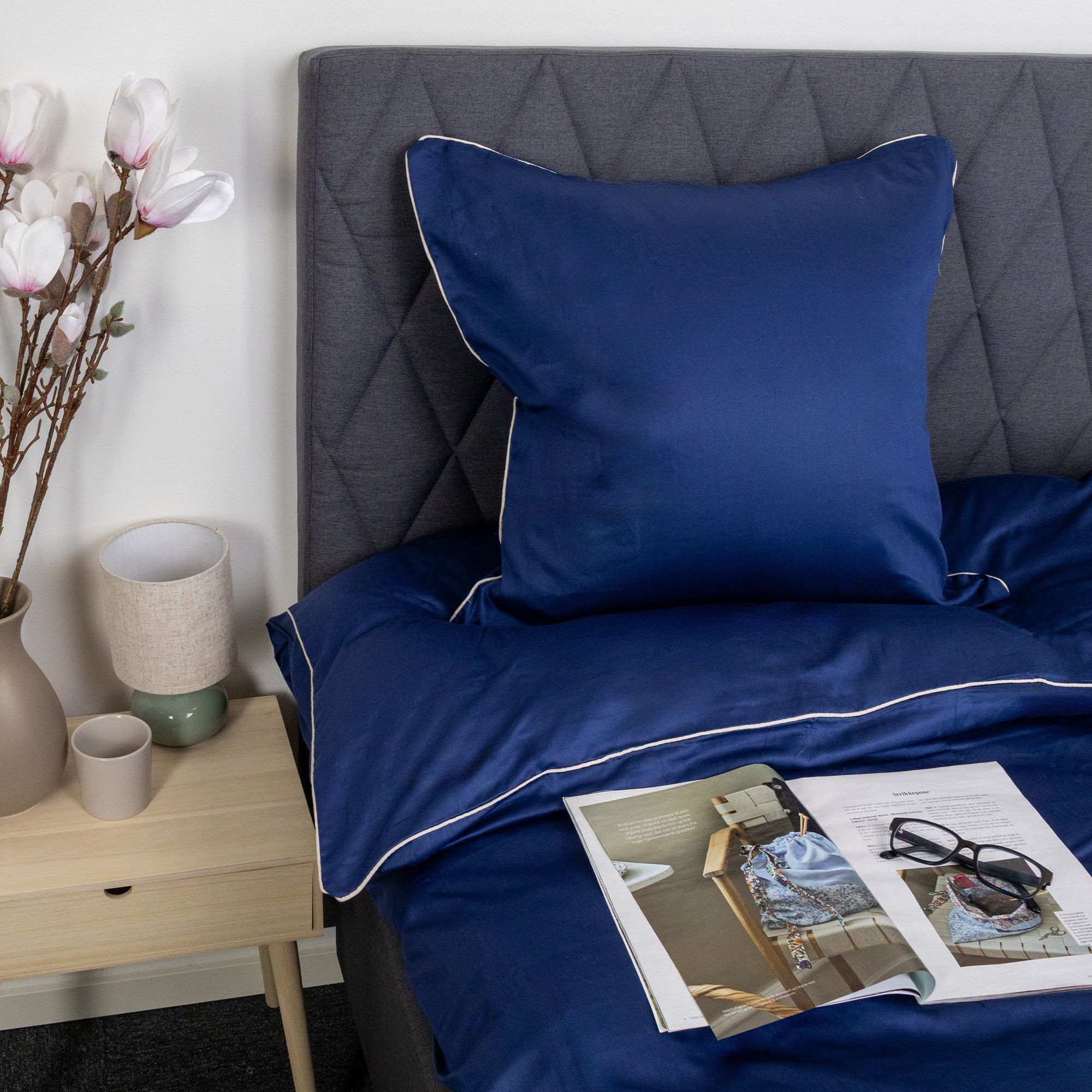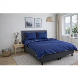 Skab et elegant og luksuriøst udtryk i soveværelset med dette eksklusive sengesæt i 100% bomuldssatin med dekorativ pipingkant fra By Borg. Det ensfarvede design i dyb blå kombineret med en hvid pipingkant tilfører et stilrent og sofistikeret look, der løfter helhedsindtrykket i soveværelset.