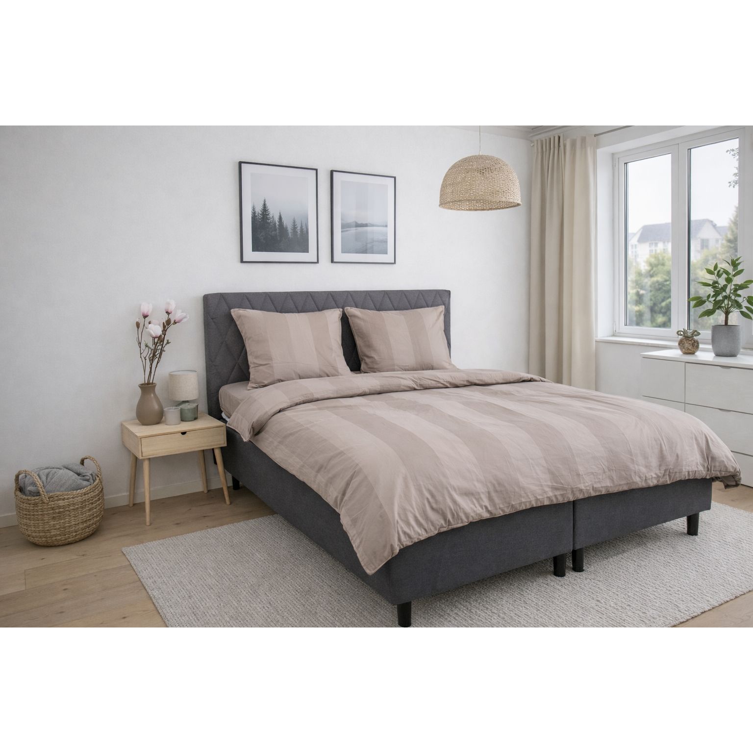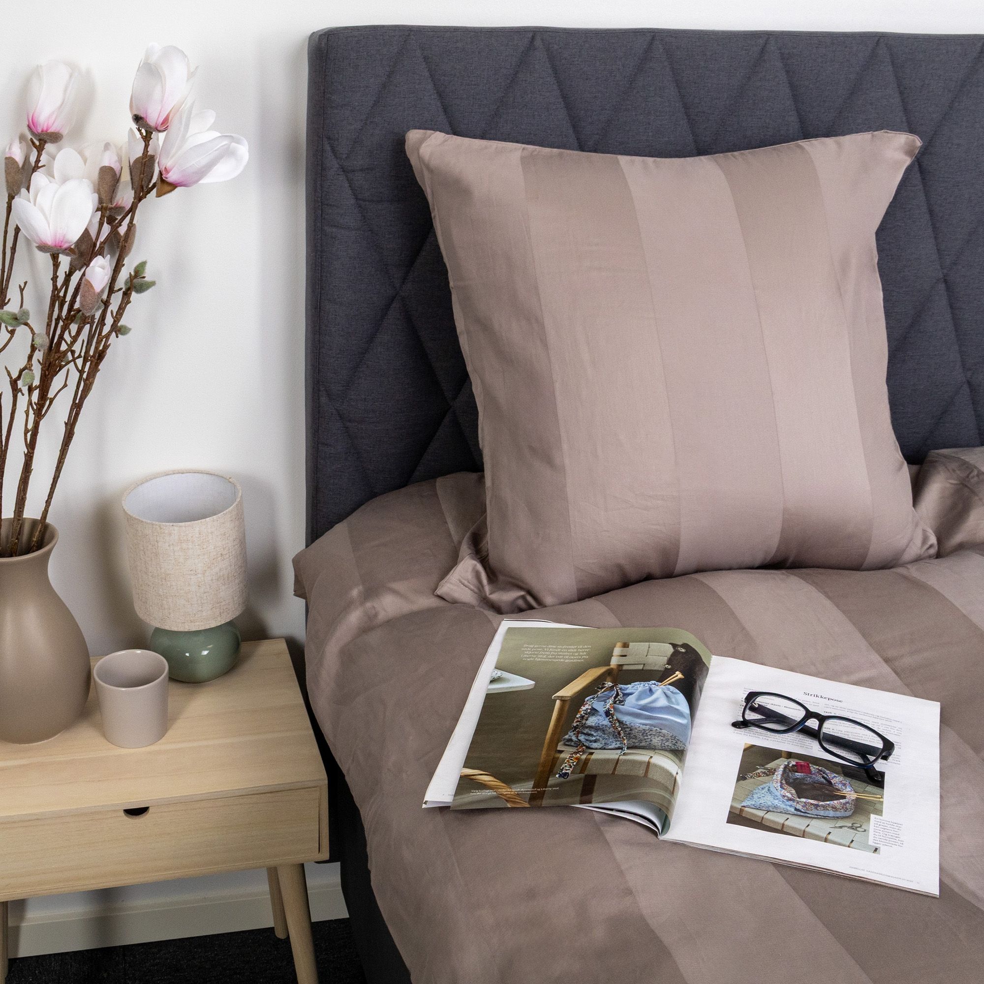 De brede jacquardvævede striber er vævet direkte ind i stoffet og tilfører dybde og struktur uden brug af print. Denne væveteknik gør, at mønsteret bevarer sit flotte udtryk vask efter vask og giver sengetøjet et eksklusivt og ensartet look.
