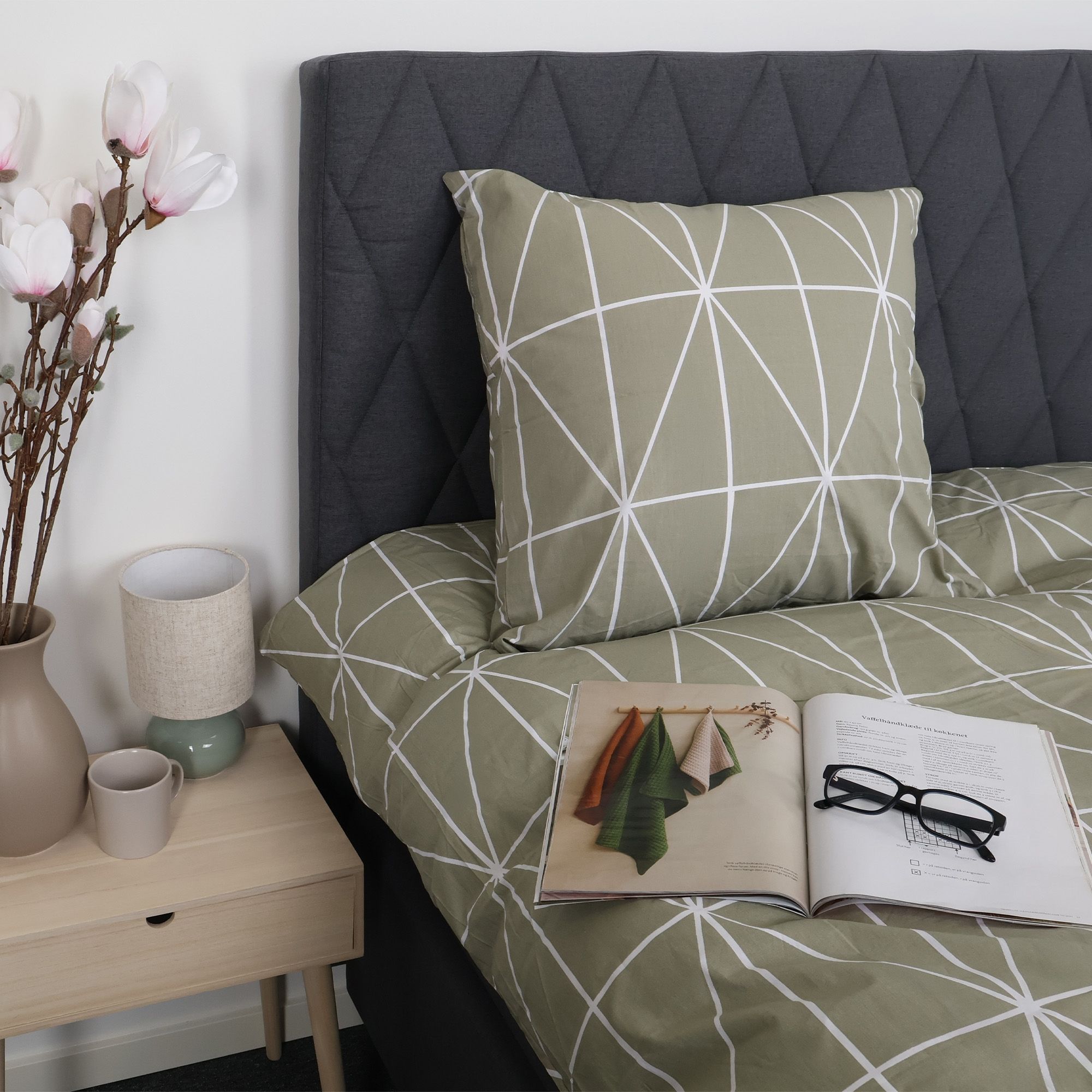 Giv soveværelset et stilrent og roligt udtryk med dette elegante sengetøj i bomuld fra Nordstrand Home. Det klassiske harlekin design i grøn skaber en harmonisk atmosfære og passer perfekt ind i både moderne og nordisk indretning.