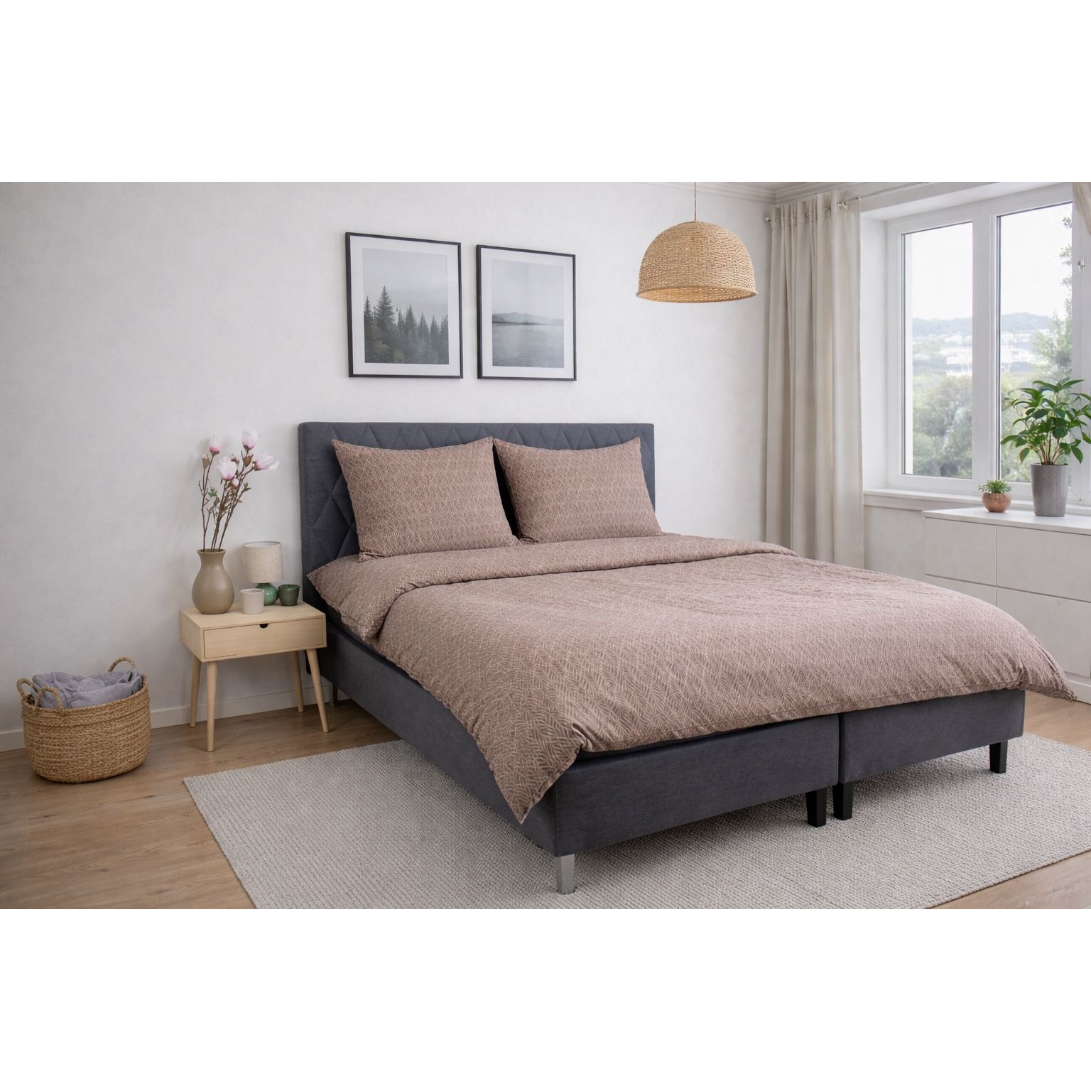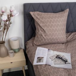Både dynebetræk og pudebetræk lukkes med lynlås, som sikrer, at dynen og puden bliver på plads, og gør det nemt at skifte sengetøj. Det brune mønster skaber et roligt og dekorativt udtryk, der passer ind i både moderne og klassiske soveværelser.