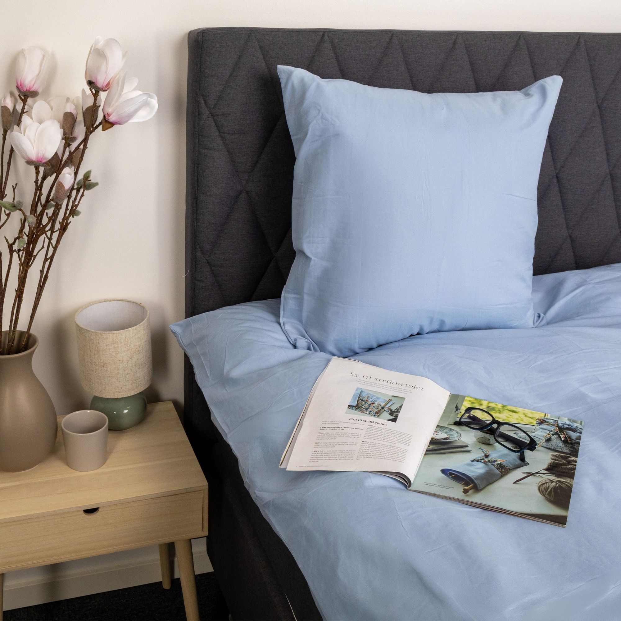 Skab et roligt og stilrent udtryk i soveværelset med dette ensfarvede microfiber sengetøj i afdæmpet lyseblå farve. Det enkle design giver et moderne og harmonisk look, mens den glatte og let glansfulde overflade tilfører sengen et elegant finish.
