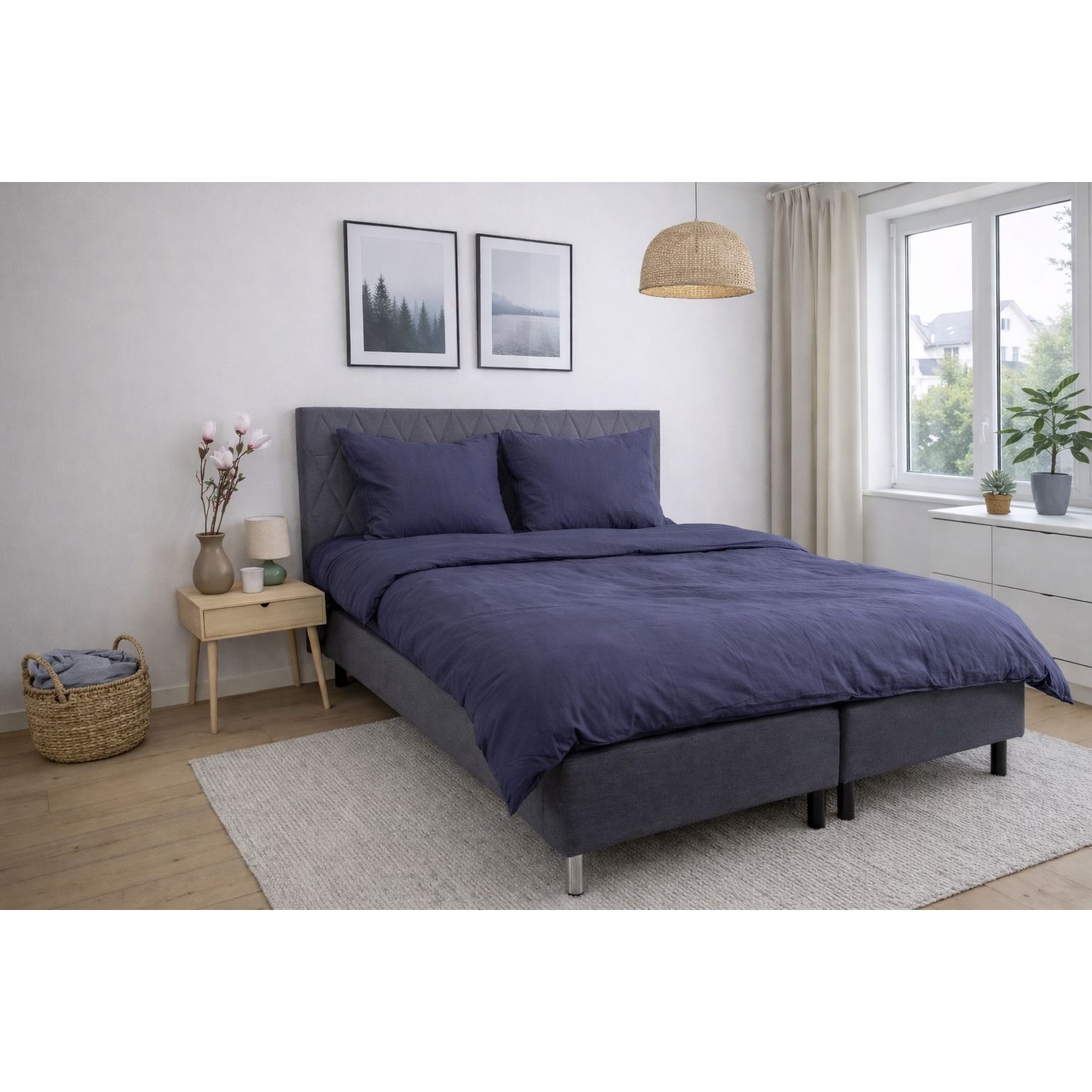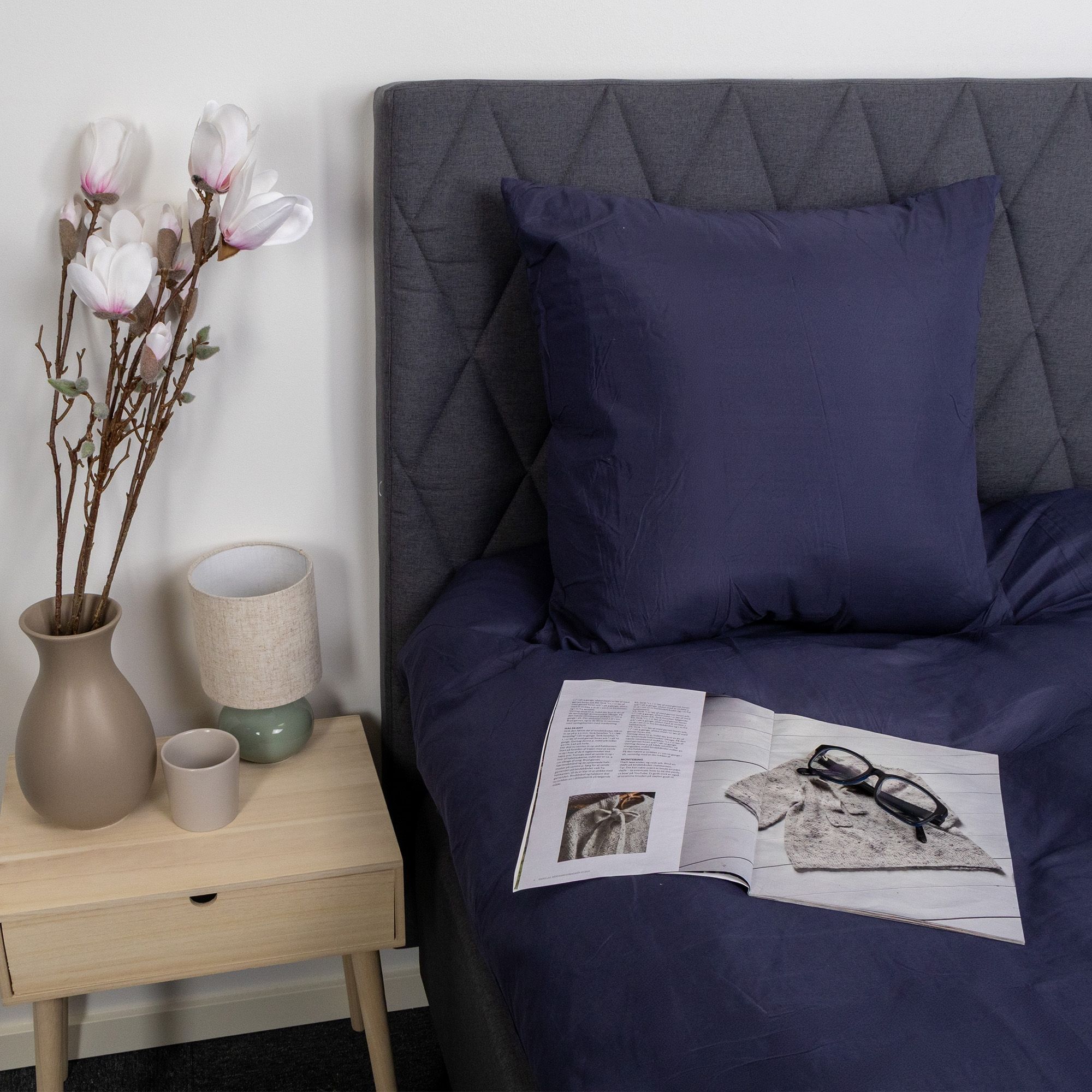 Skab et roligt og stilrent udtryk i soveværelset med dette ensfarvede microfiber sengetøj i afdæmpet mørkeblå farve. Det enkle design giver et moderne og harmonisk look, mens den glatte og let glansfulde overflade tilfører sengen et elegant finish.