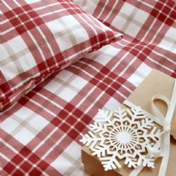 Sengetøj 140x220 cm - 100% bomuldsflonel - Høie of Scandinavia - Lukas Rød