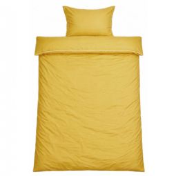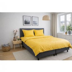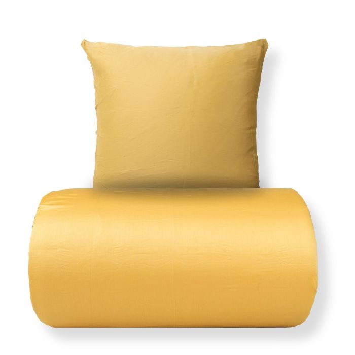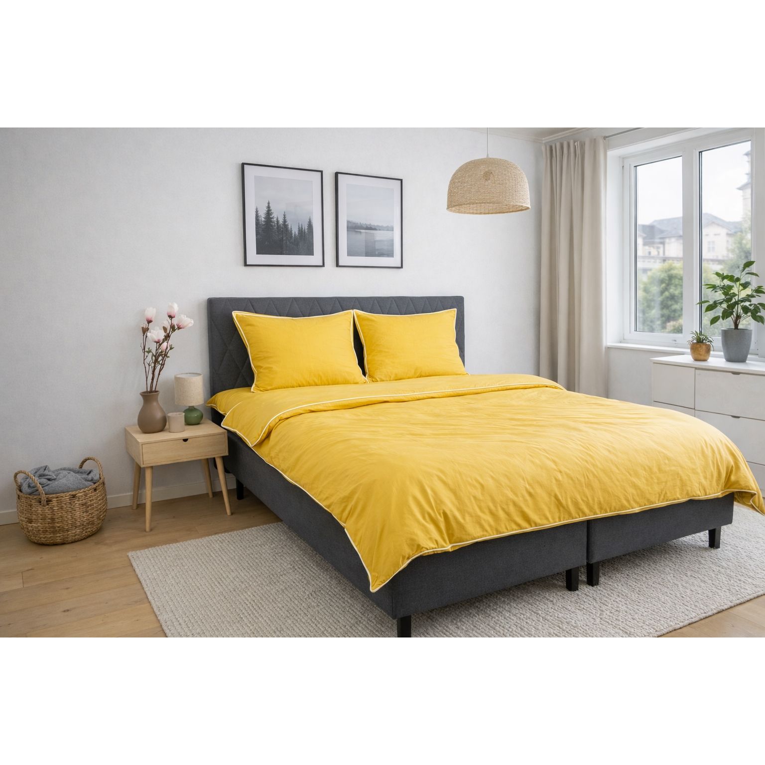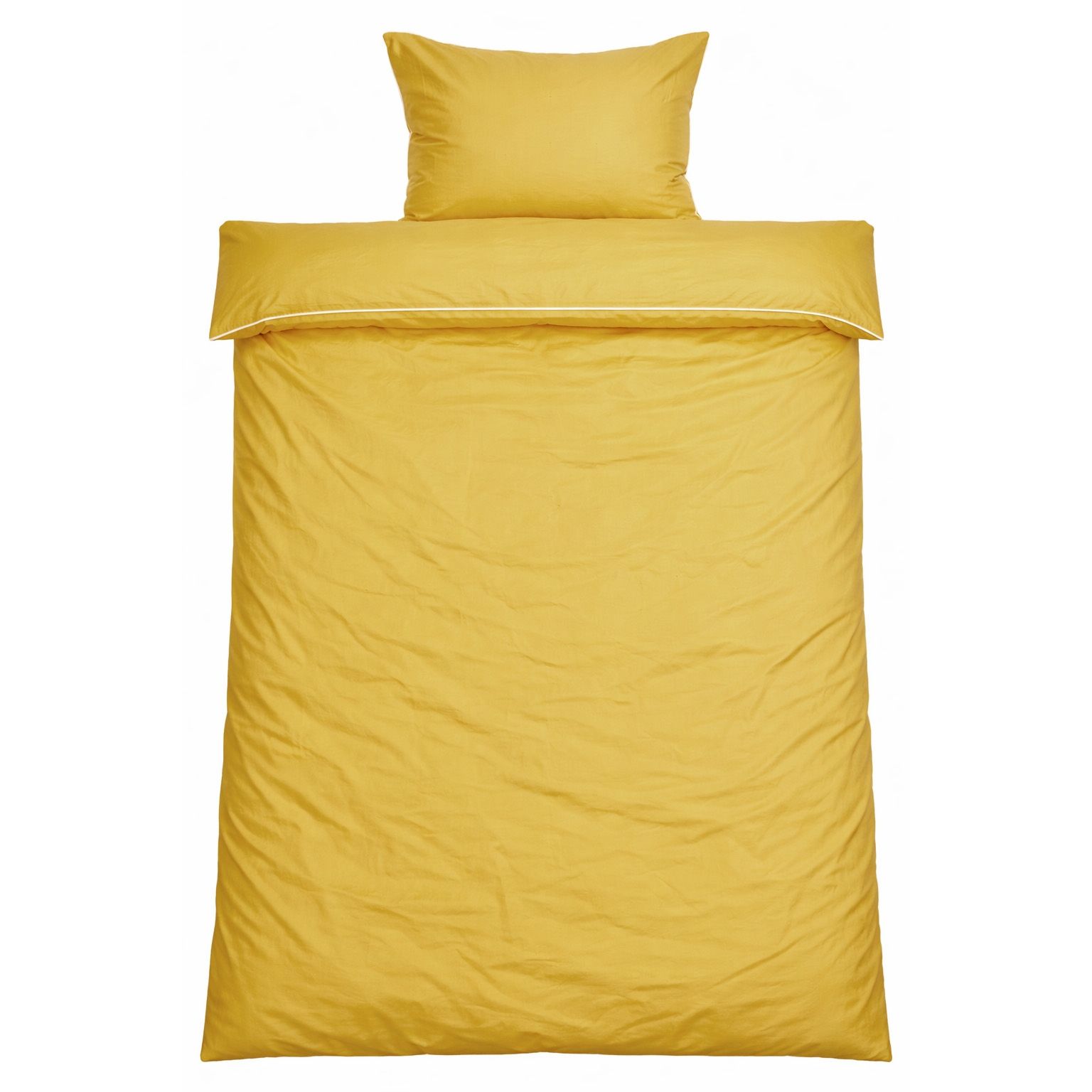 Sengetøj 140x220 cm - 100% bomuldssatin - Gul med hvid pipingkant