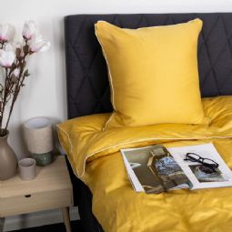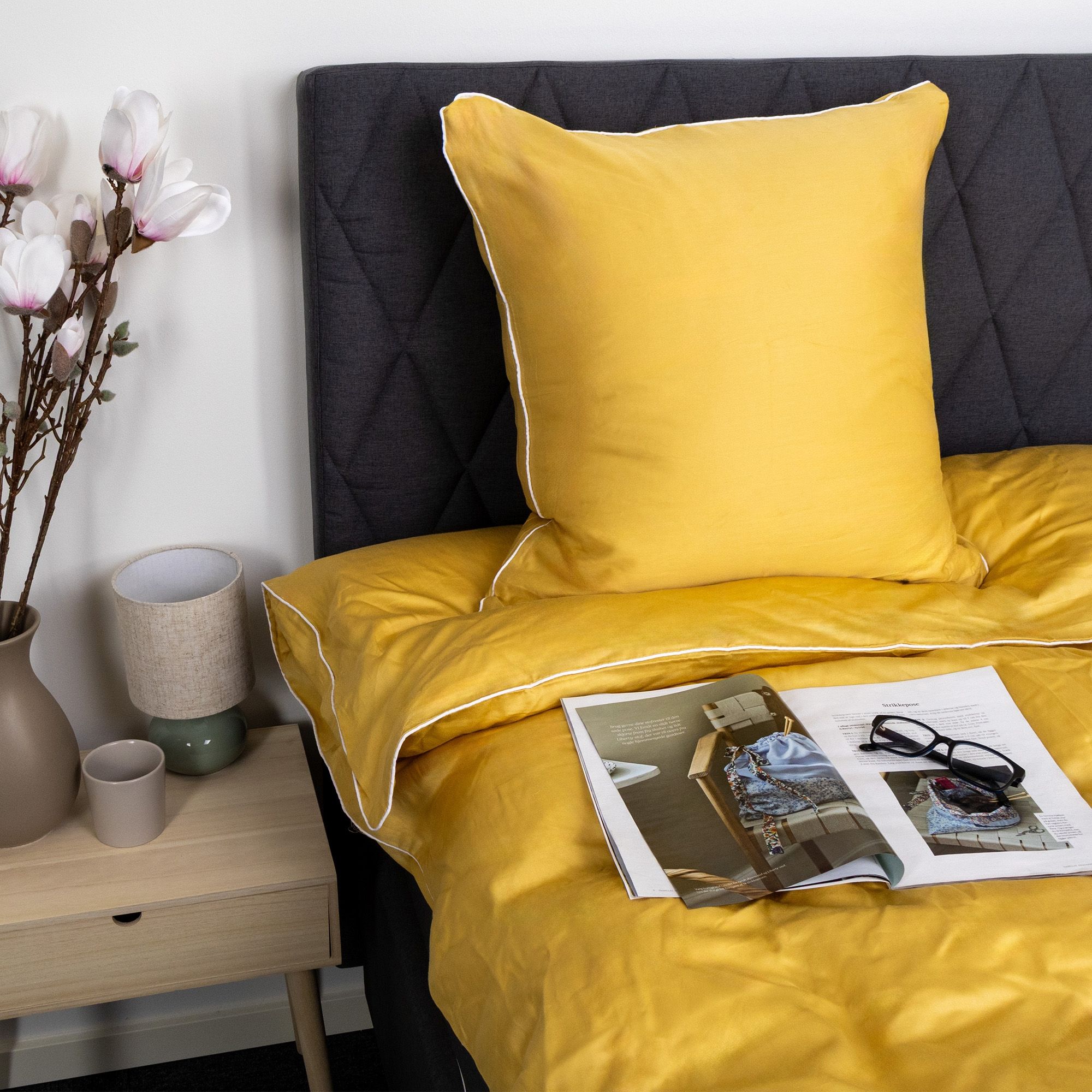 Skab et elegant og luksuriøst udtryk i soveværelset med dette eksklusive sengesæt i 100% bomuldssatin med dekorativ pipingkant fra By Borg. Det ensfarvede design i dyb gul kombineret med en hvid pipingkant tilfører et stilrent og sofistikeret look, der løfter helhedsindtrykket i soveværelset.