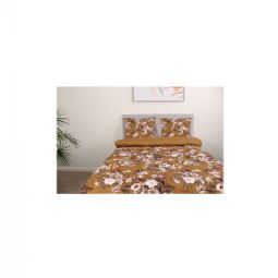 Sengetøj 140x220 cm - Vendbart design i 100% Bomuldssatin - Flowers & Dots karry - Sengesæt fra By Night
