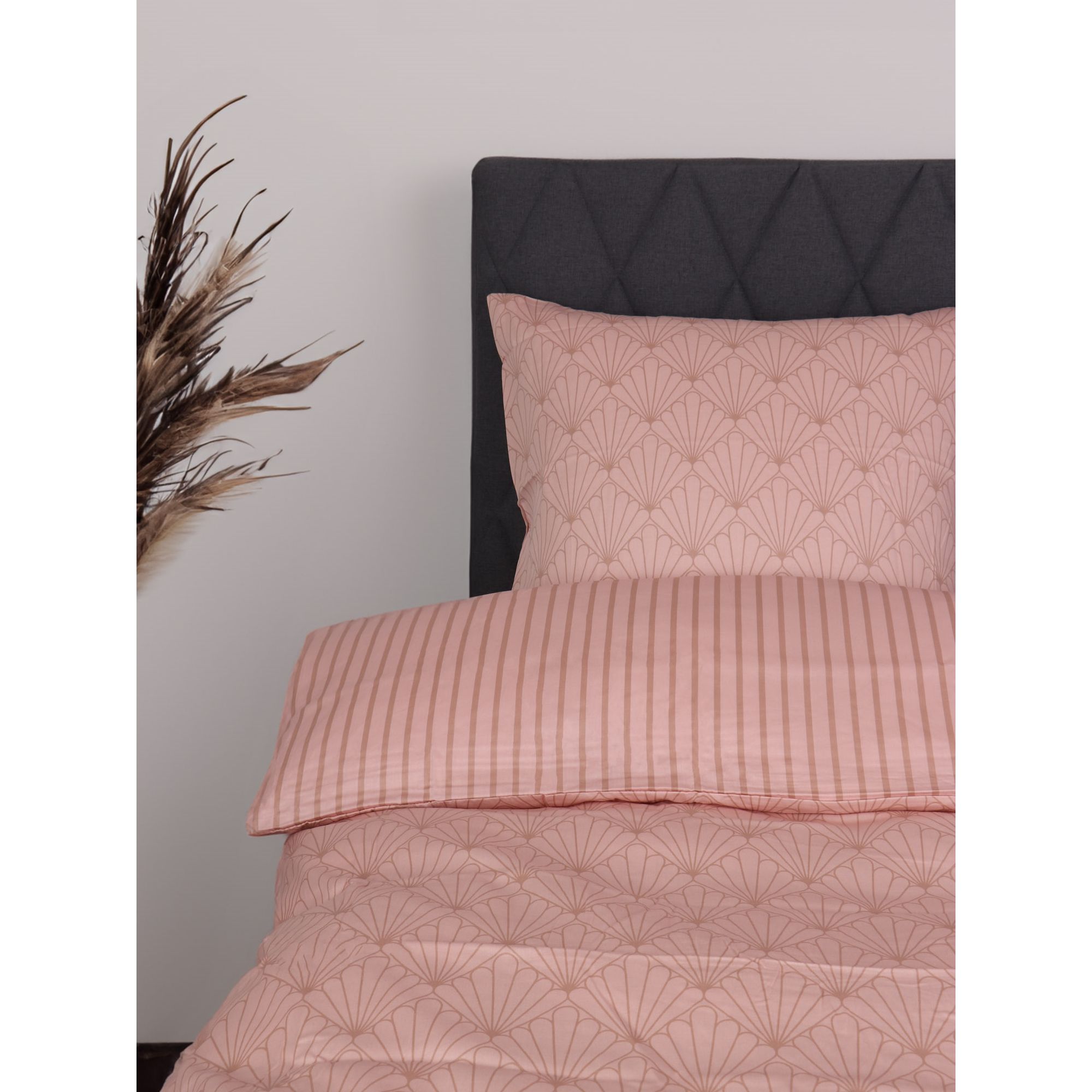 Sengetøj 150x210 cm - Vendbart design i 100% Bomuldssatin - Fan peach - Sengesæt fra By Night