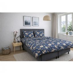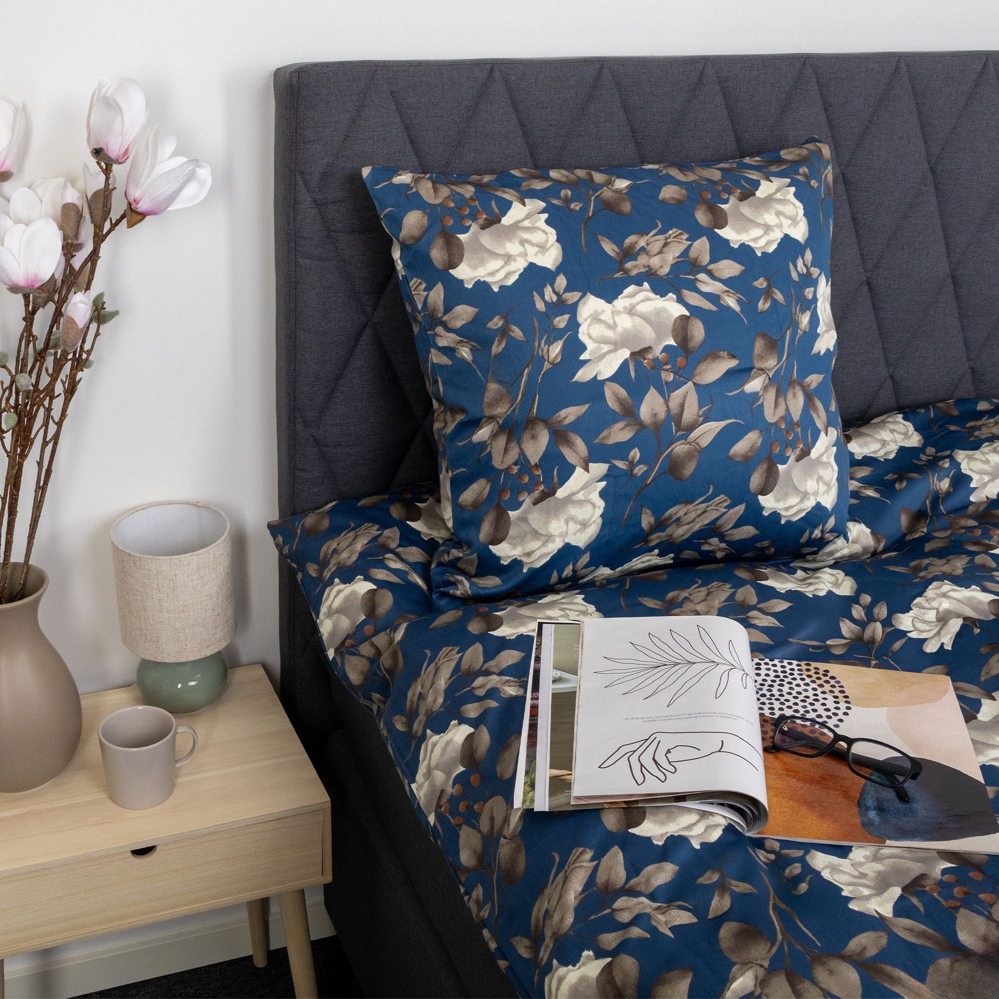 Sengetøj - bomuldssatin - Blossom blue - Blomster print