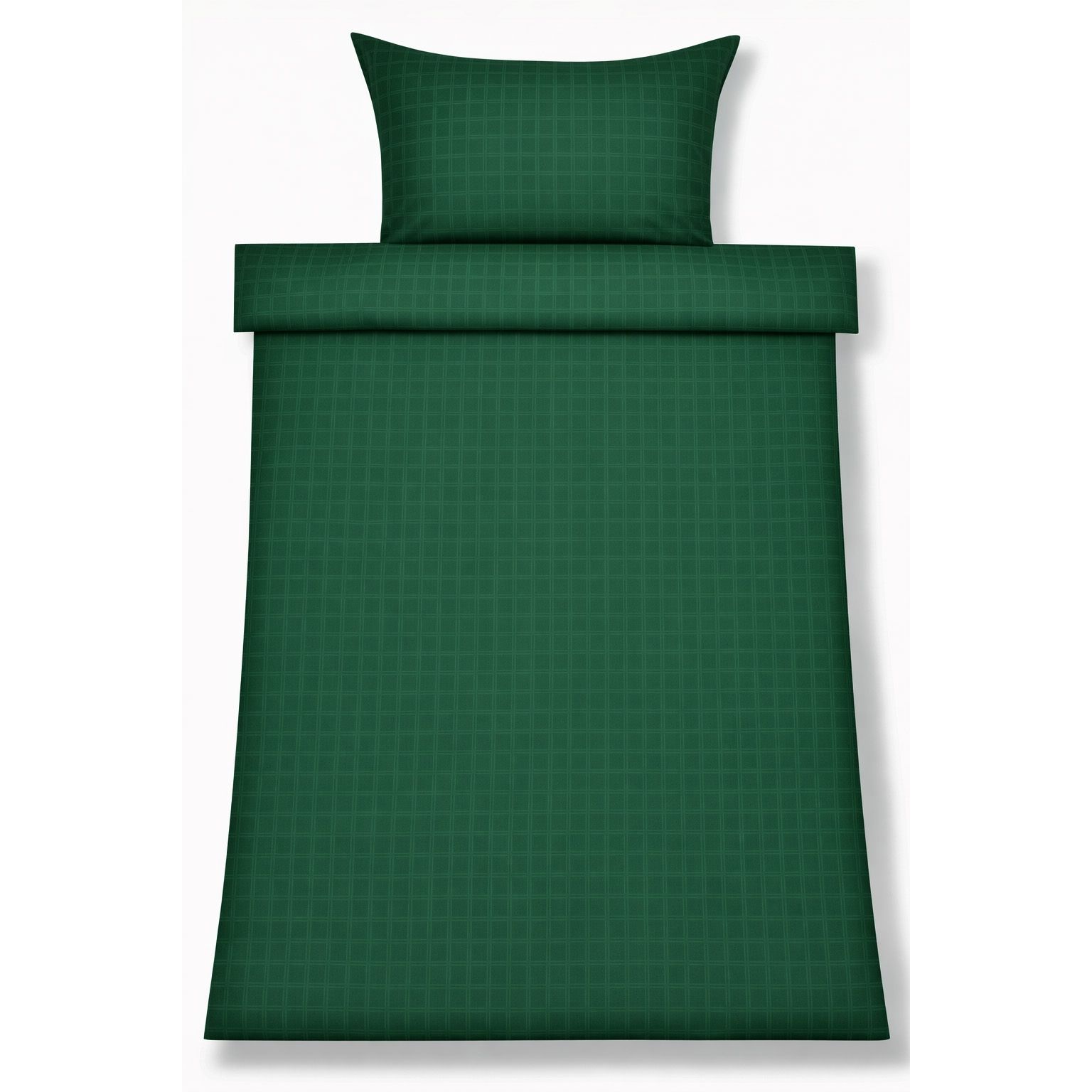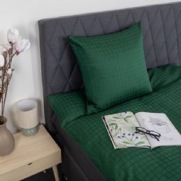 Det jacquardvævede ternede mønster er vævet direkte ind i stoffet og skaber struktur og dybde uden brug af print. Denne vævemetode sikrer, at mønsteret bevarer sit udtryk vask efter vask og giver sengetøjet et eksklusivt og gennemført look. Den grønne farve understøtter det rolige design og passer let ind i både moderne og klassiske soveværelser.