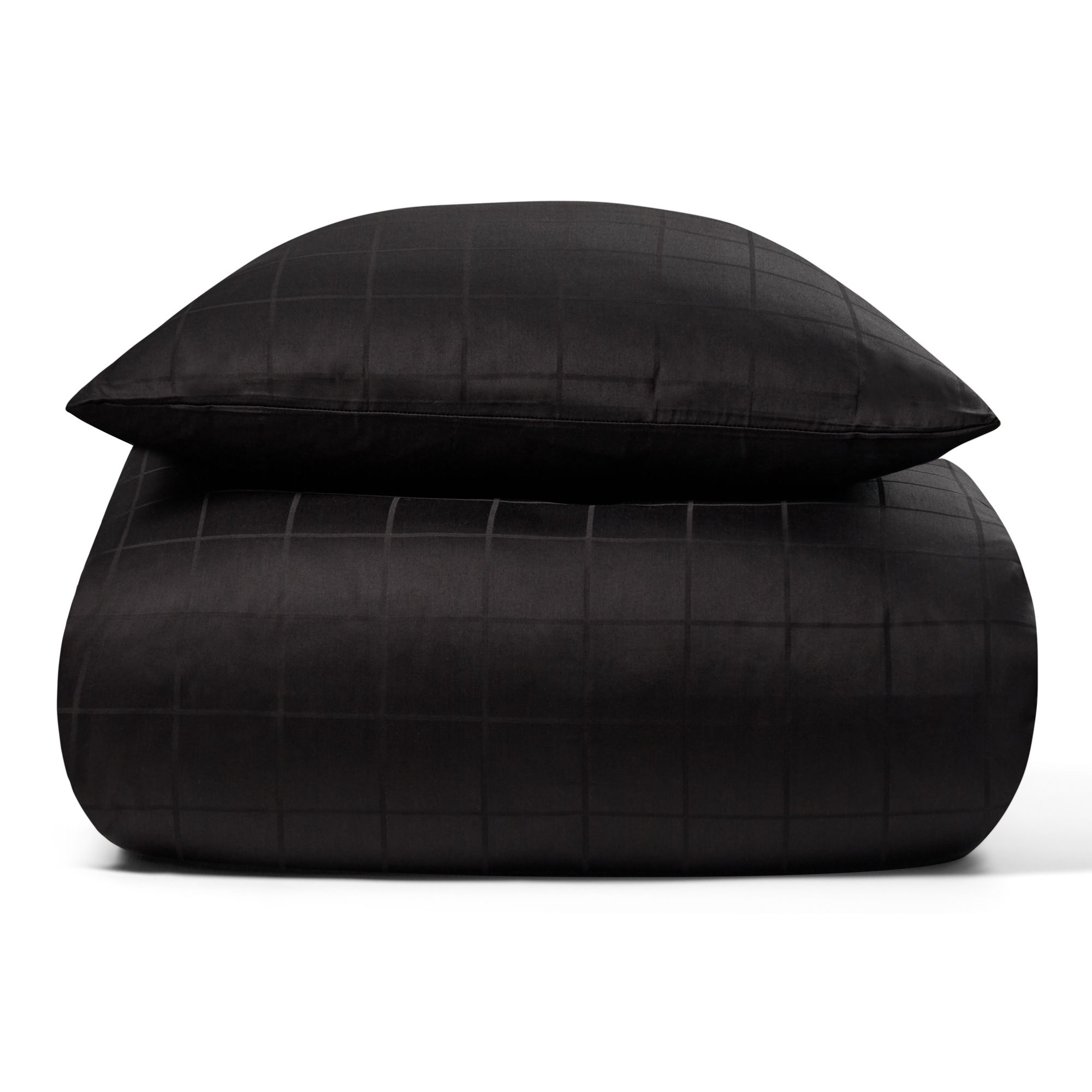 Sengetøj til king size dyne 240x220 cm - Blødt, jacquardvævet bomuldssatin - Check sort - By Night sengesæt