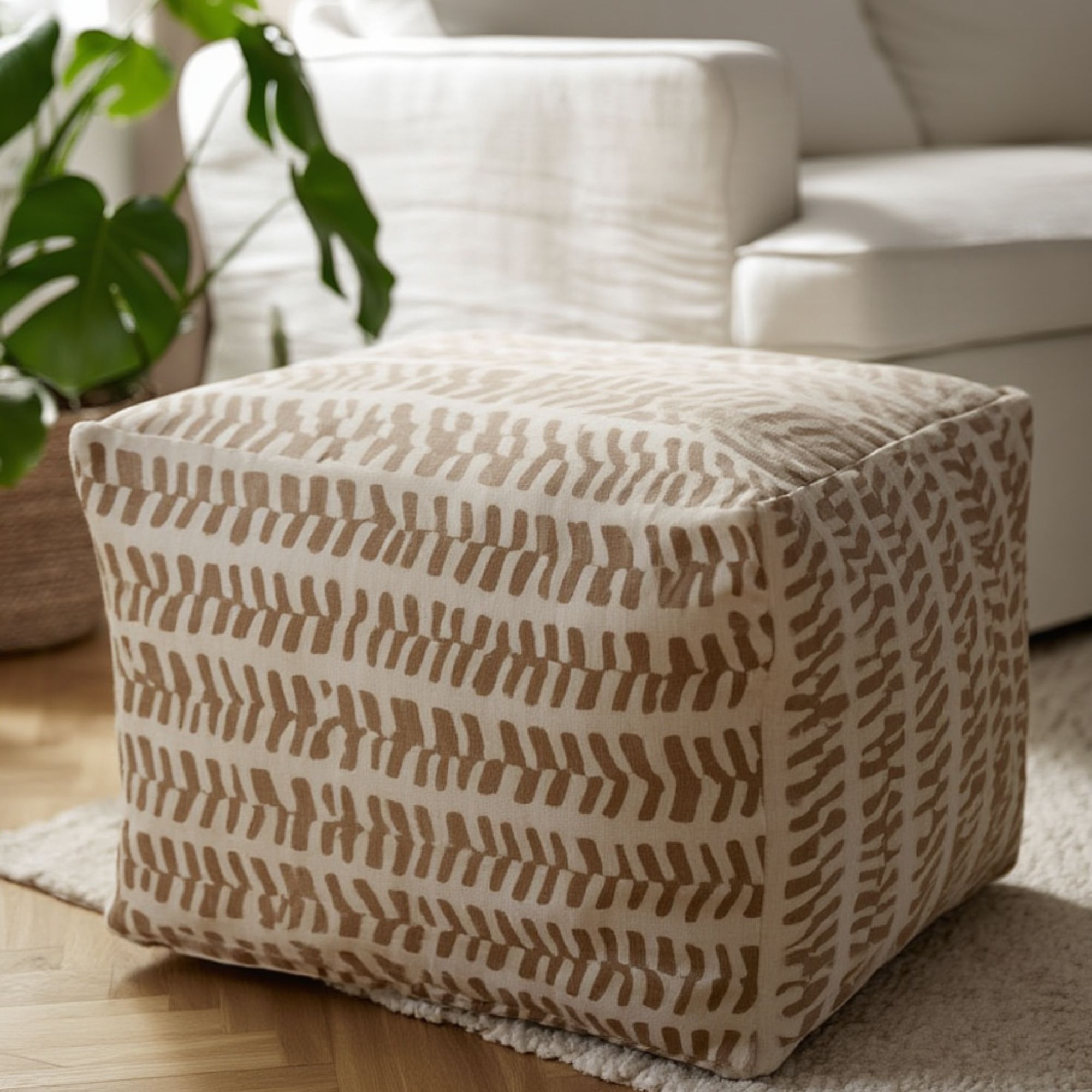 Sidepuf - 28x28x40 cm - Beige med mønster - Praktisk puf fra Nordstrand Home
