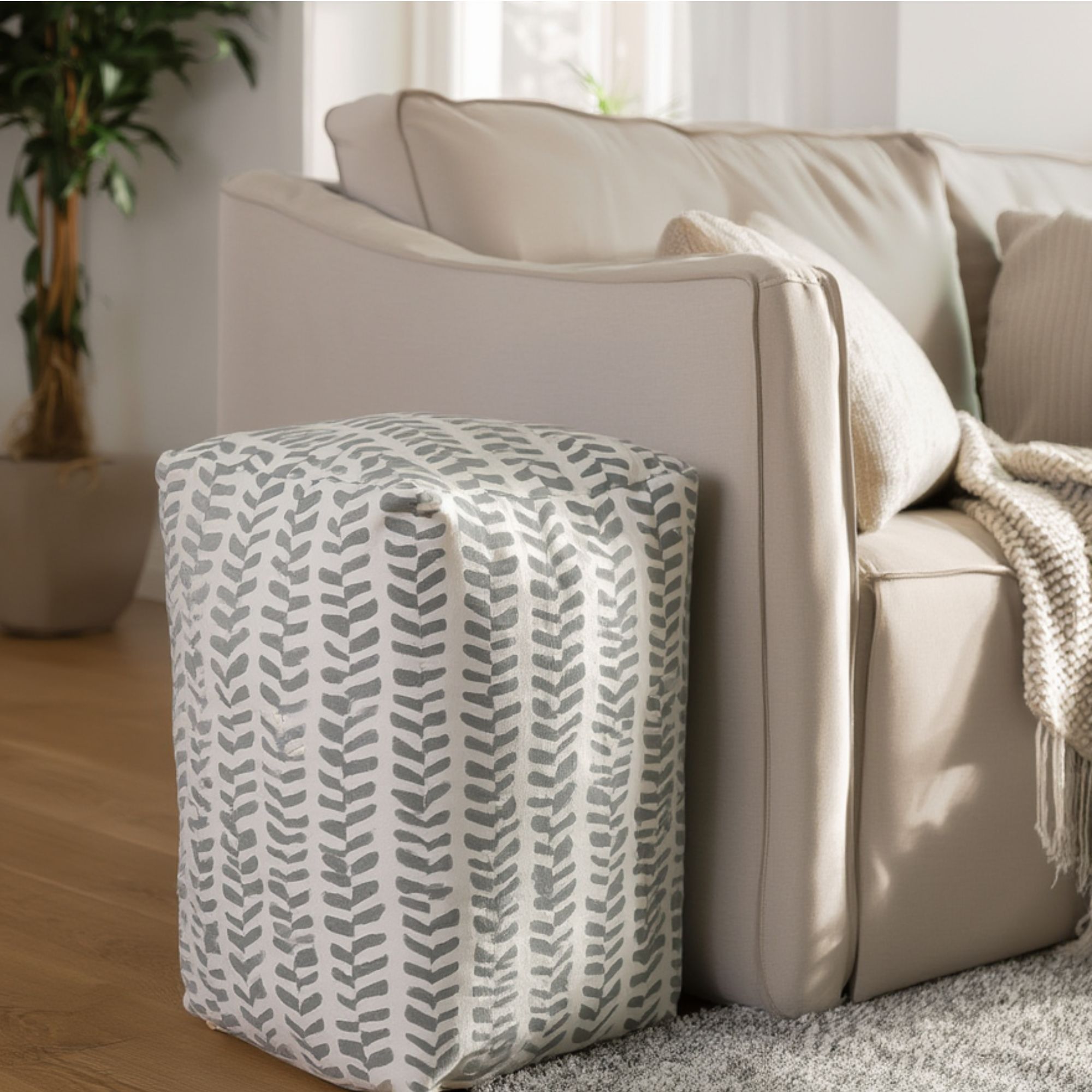 Sidepuf - 28x28x40 cm - Lysegrå med mønster - Praktisk puf fra Nordstrand Home