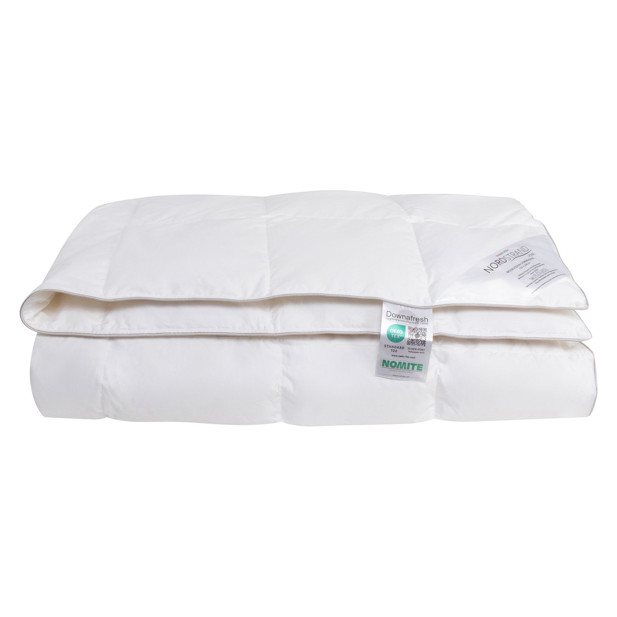 Det bløde bolster af 100% bomuld er helt fint tætvævet i små kassetter, så dunene har bedste vilkår for god og jævne varmefordeling, samt en høj åndbarhed og lethed. Denne tætte vævning gør også at dynen er NOMITE certificeret, da støvmider ikke kan trænge igennem bolsteret, hvilket også gør dynen velegnet til allergikere.