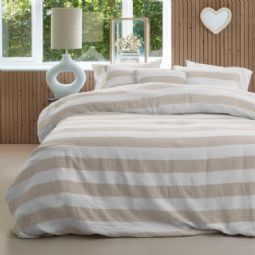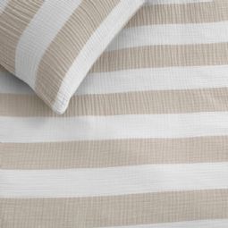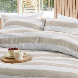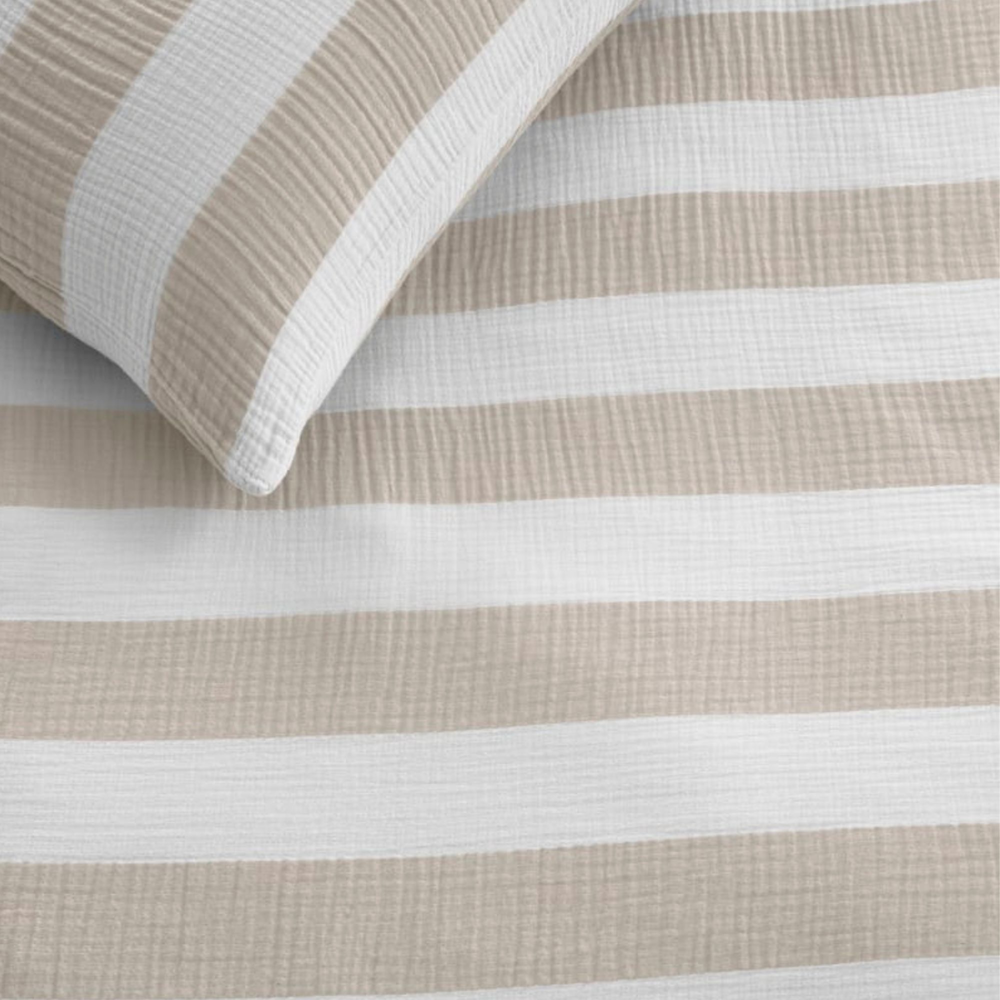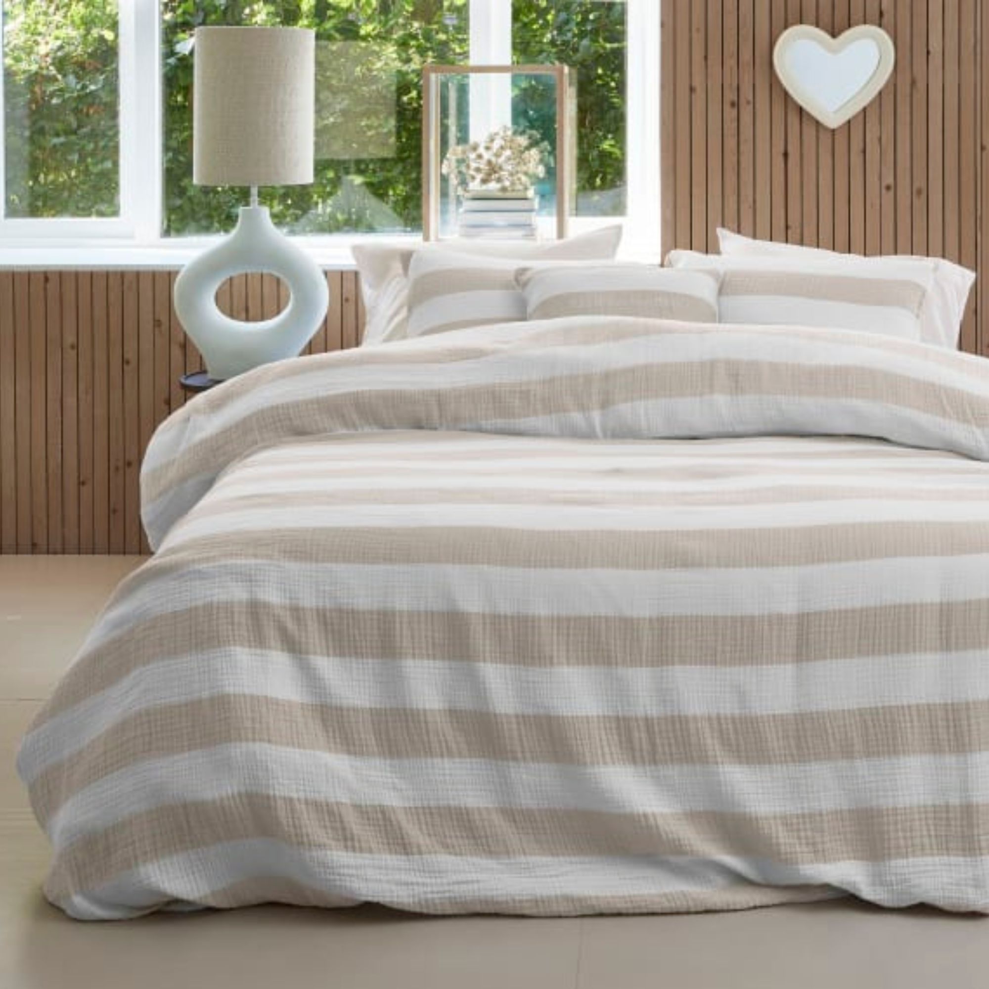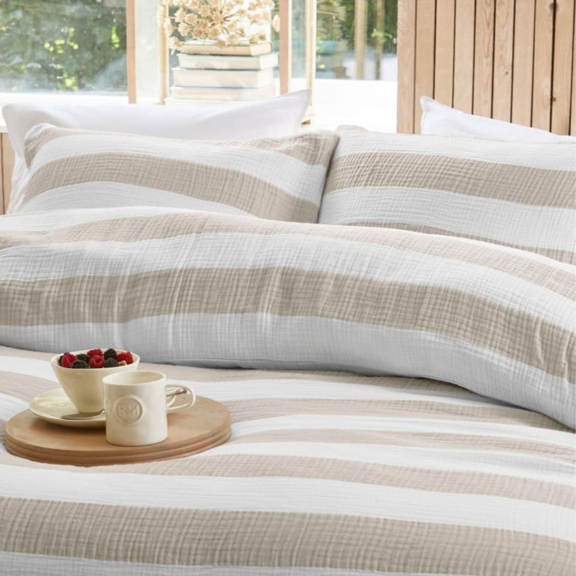 Stribet sengetøj 140x220 cm - Sengesæt i 100% blød musselin bomuld - Striped Sand - Riviéra Maison sengelinned