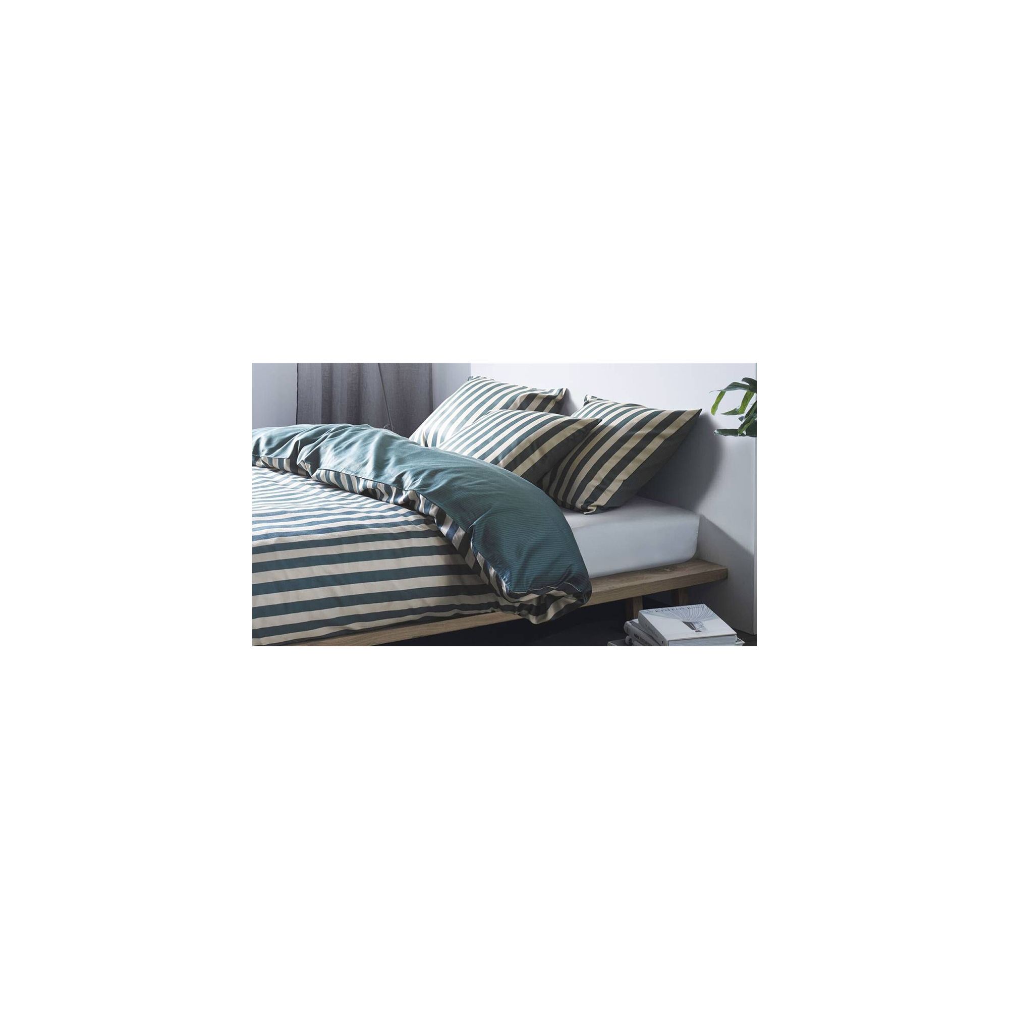 Stribet sengetøj 140x220 cm - Pine green - Vendbar dynebetræk - 100% Bomuldssatin sengesæt - Marc O'Polo