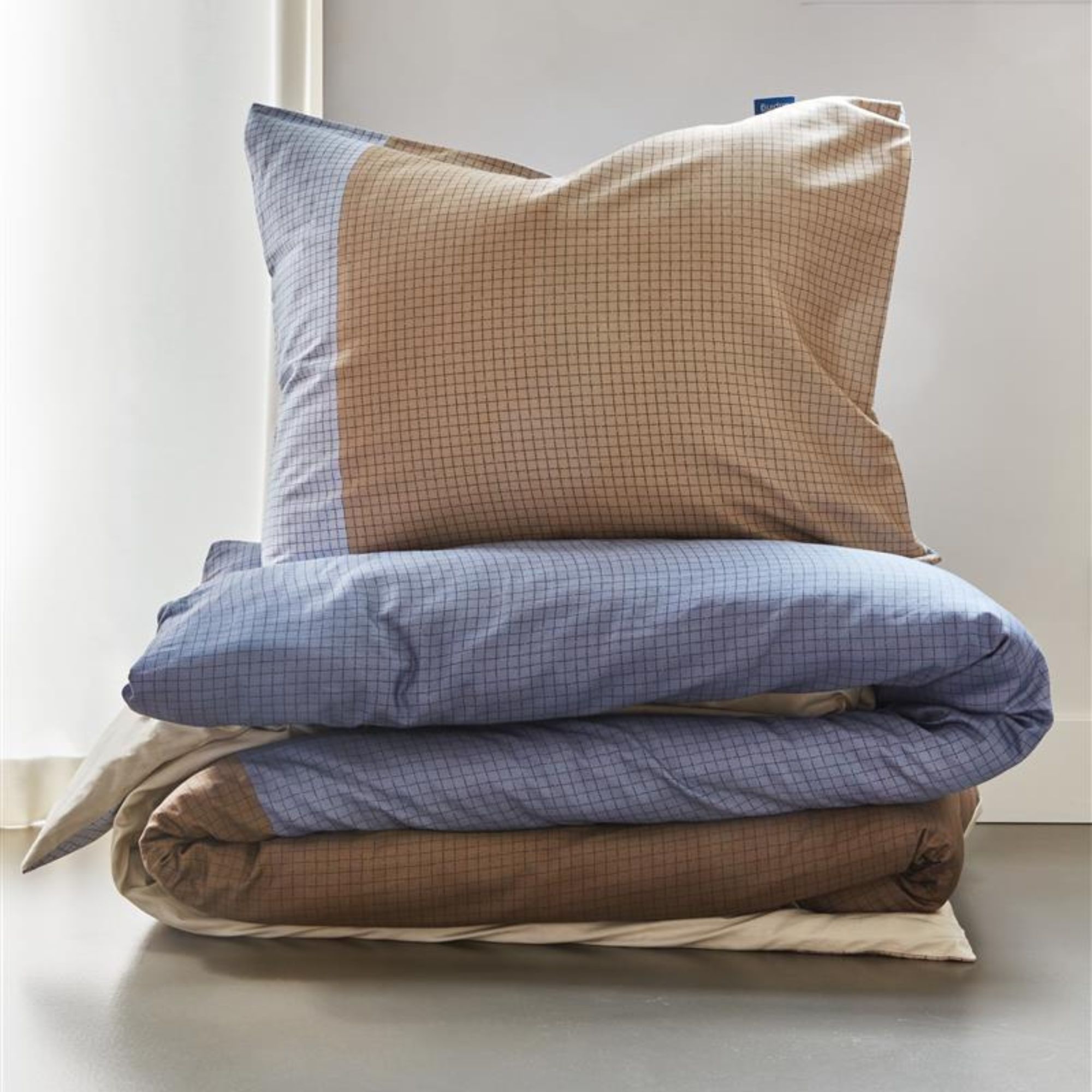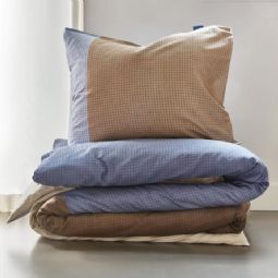 Ternet sengetøj 140x200 cm - Sandfarvet og blåt sengesæt i 100% bomuldssatin - Citadel sand - Auping sengelinned