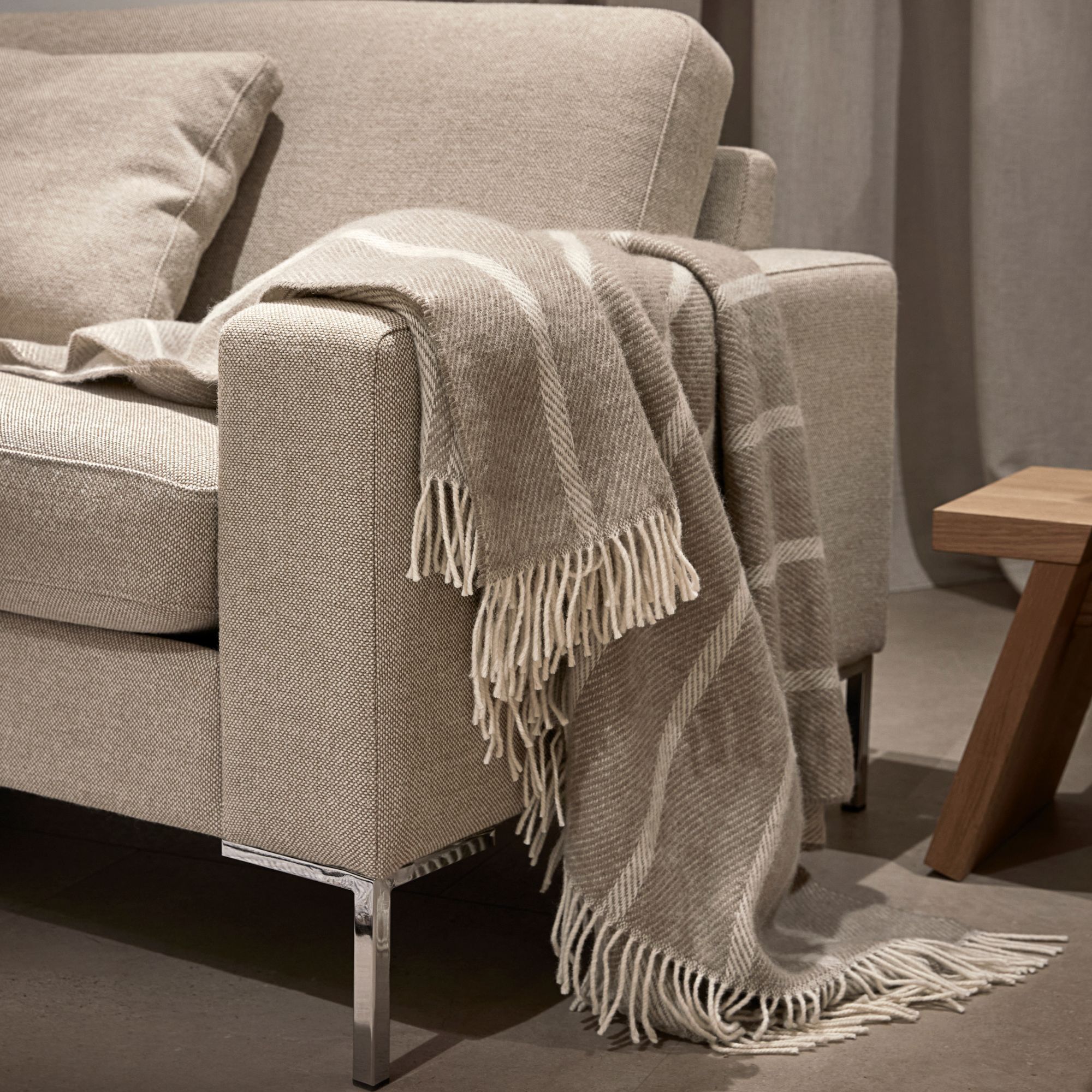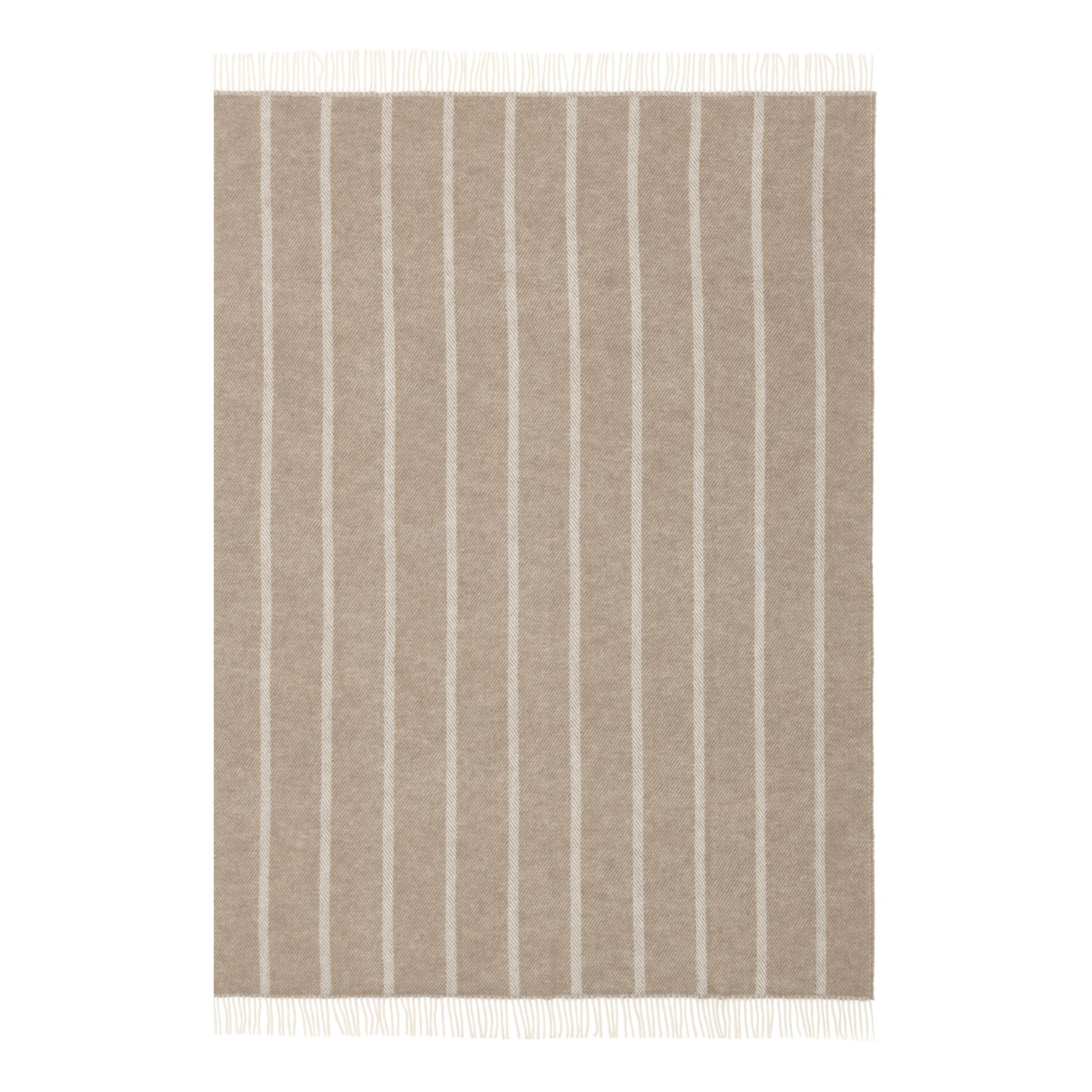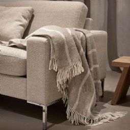Uldplaid 120x180 cm - Beige plaid med striber - 100% ny ren uld - Istinden Høie of Scandinavia uldtæppe