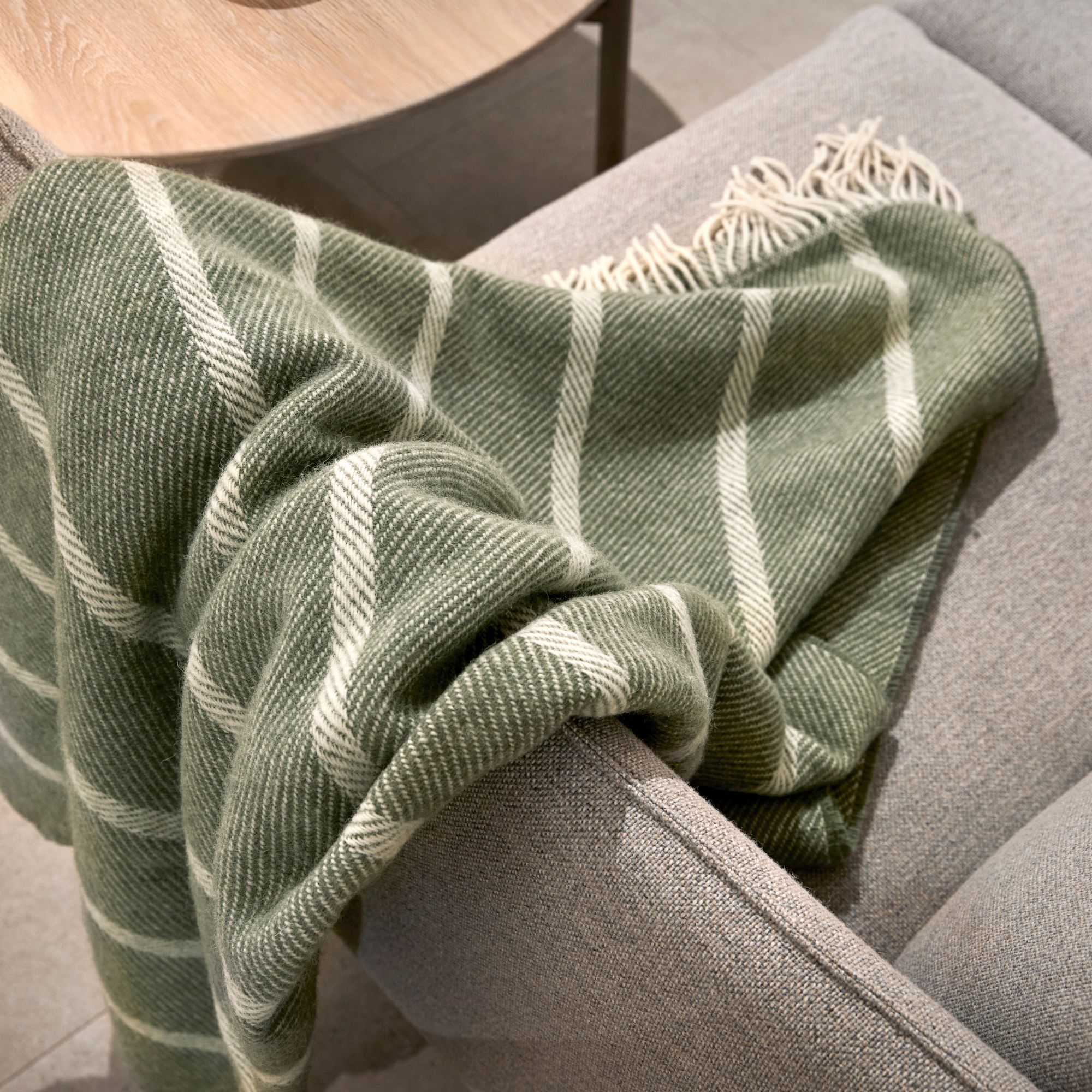 Uldplaid 120x180 cm - Grøn plaid med striber - 100% ny ren uld - Istinden Høie of Scandinavia uldtæppe