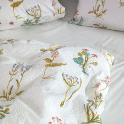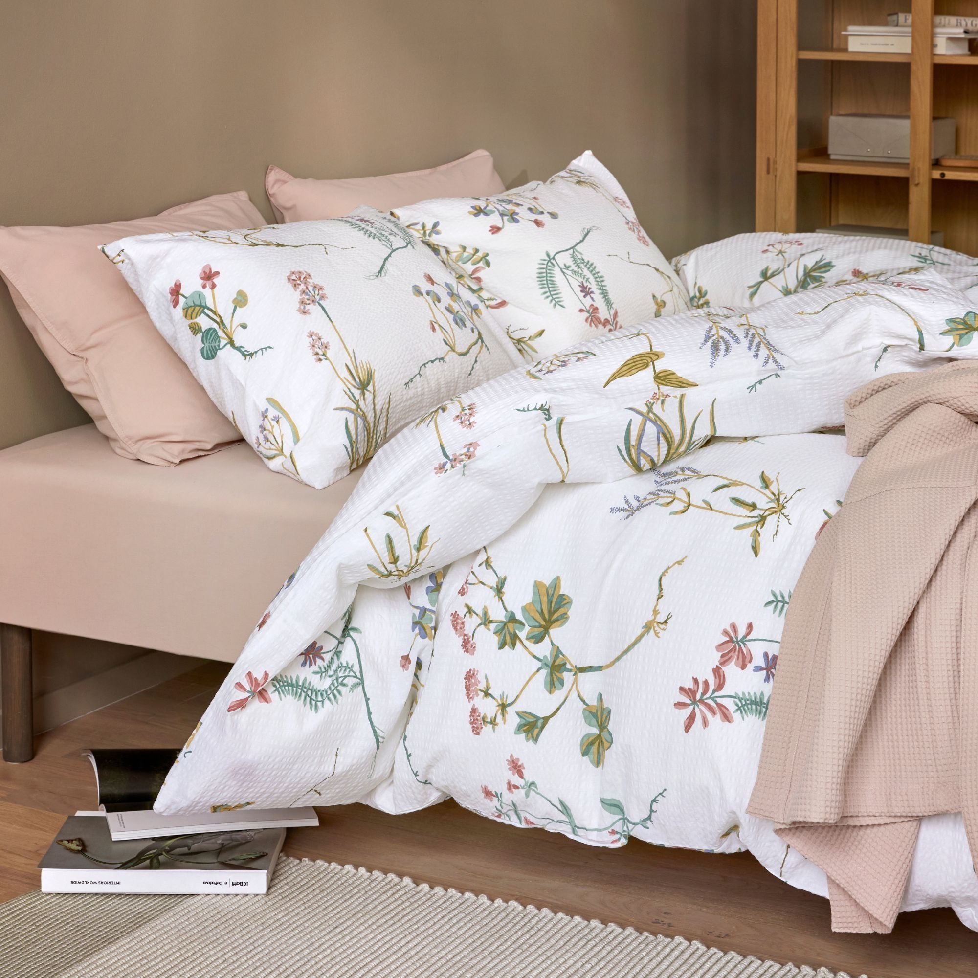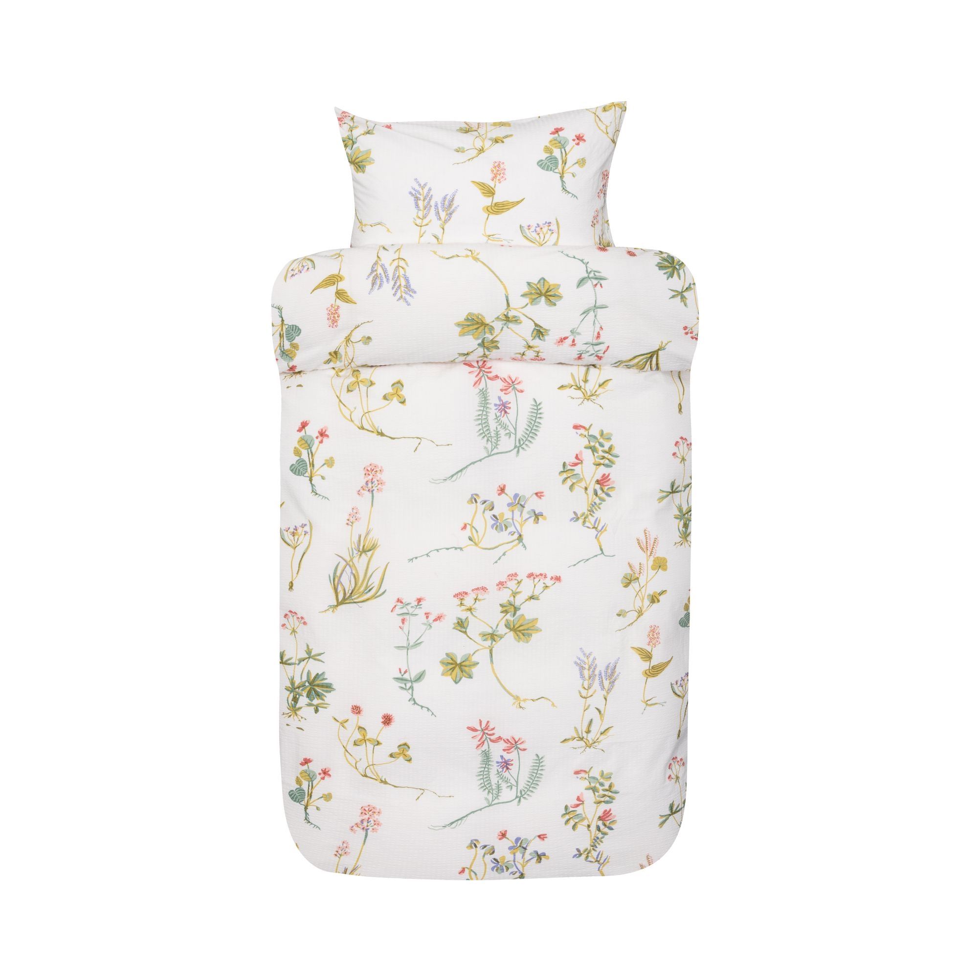Vævet krepp sengetøj 140x220 cm - Hvidt sengesæt med blomster - 100% blød bomuld - Bæk og bølge sengelinned - Fiona Høie Of Scandinavia