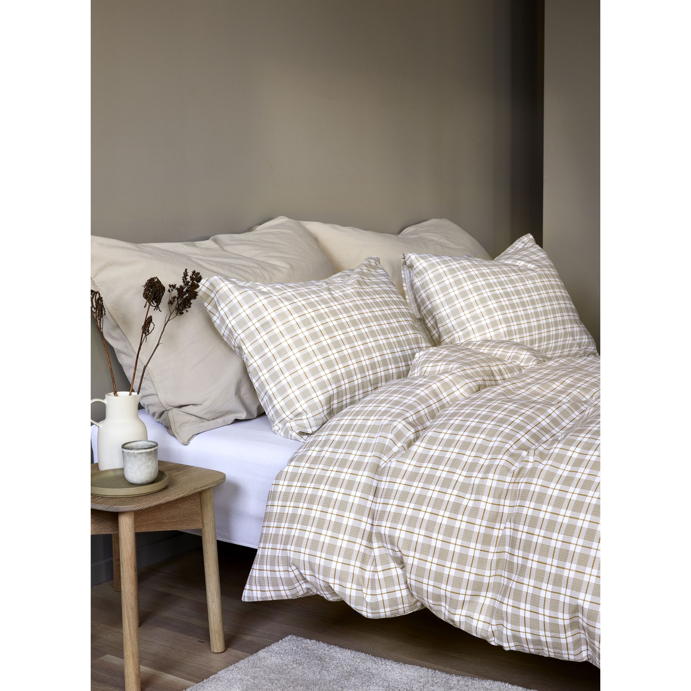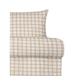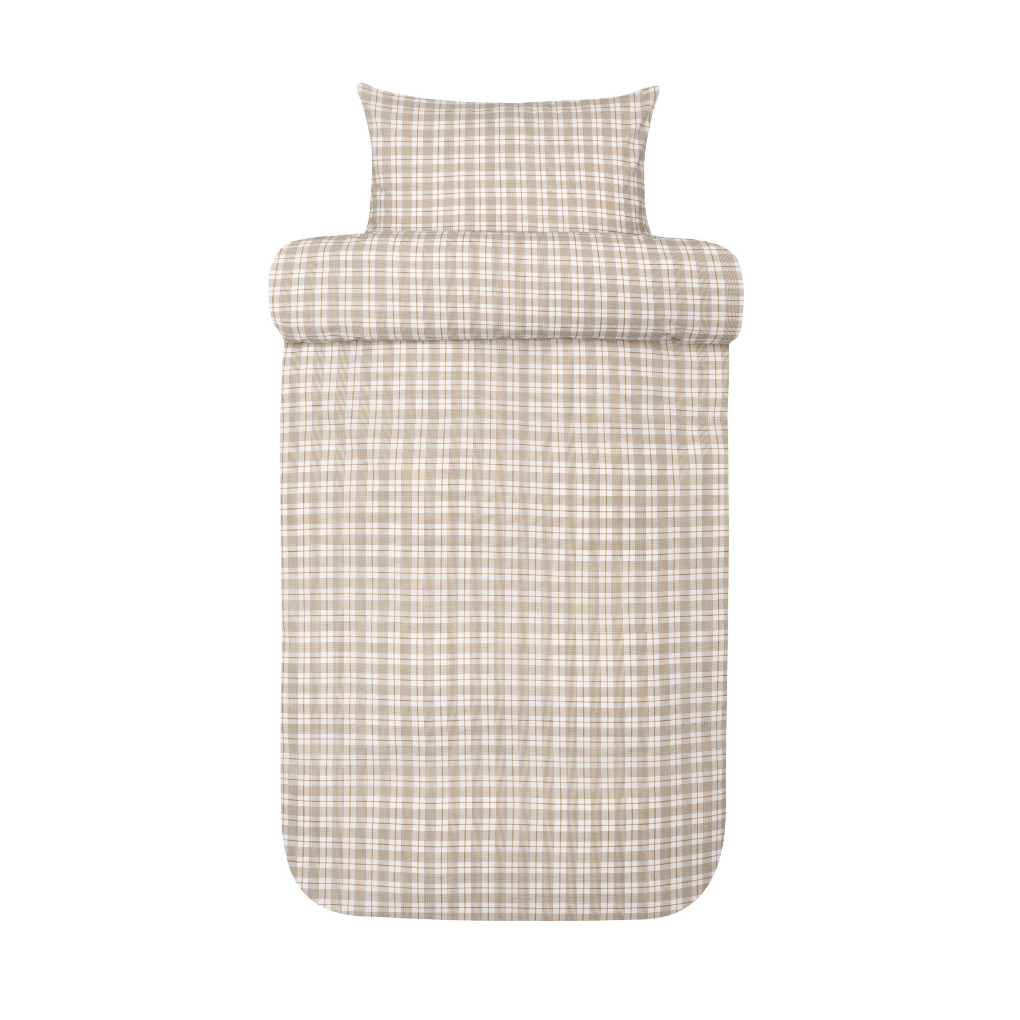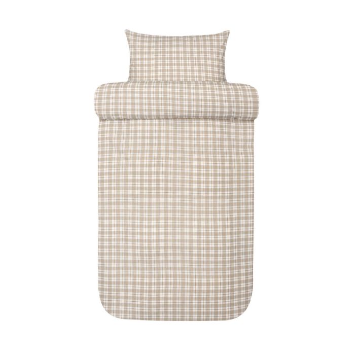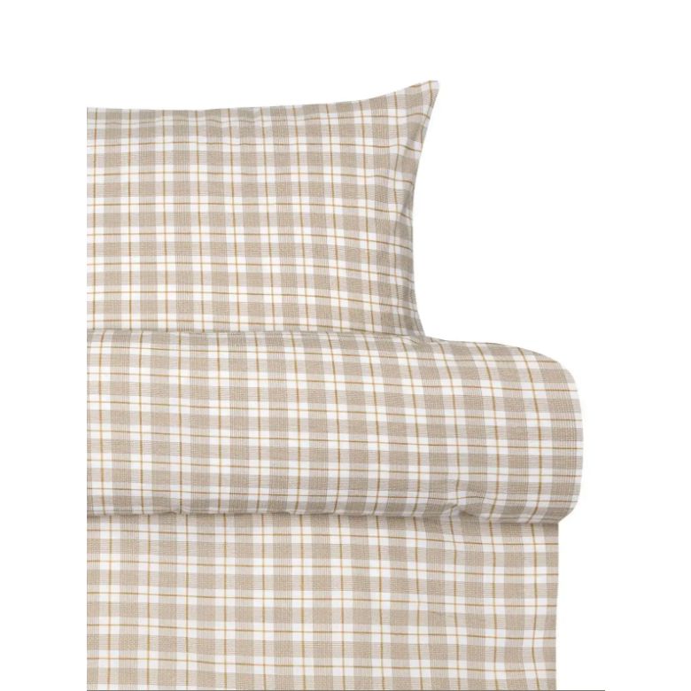 Vævet krepp sengetøj - 100% blød bomuld - Beige med tern - Bæk og bølge sengelinned - Kyrre Høie Of Scandinavia