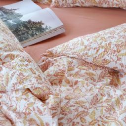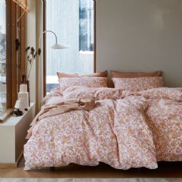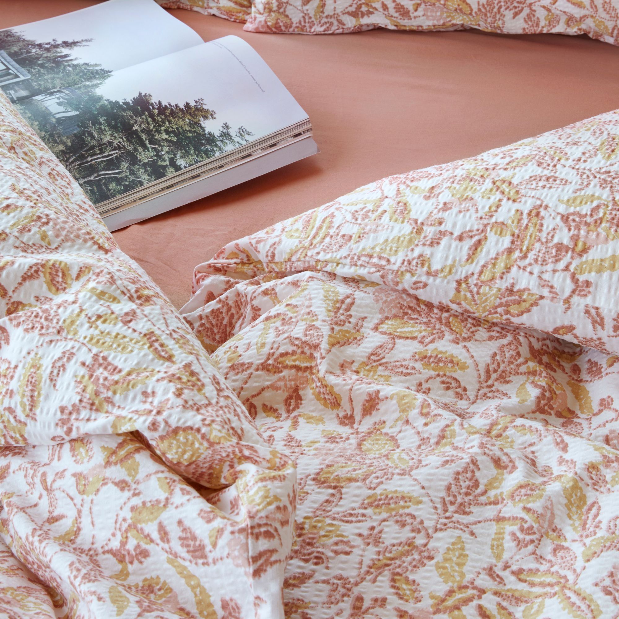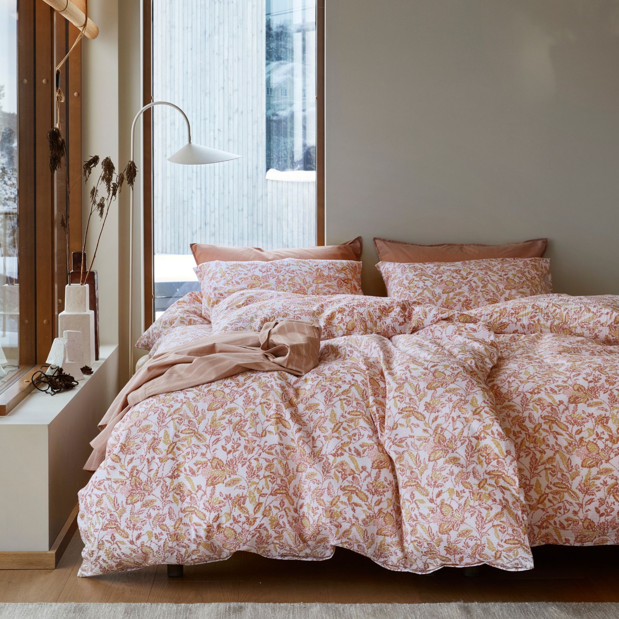 Vævet krepp sengetøj 140x220 cm - Lyserødt sengesæt med blade - 100% blød bomuld - Bæk og bølge sengelinned - Barbro Høie Of Scandinavia