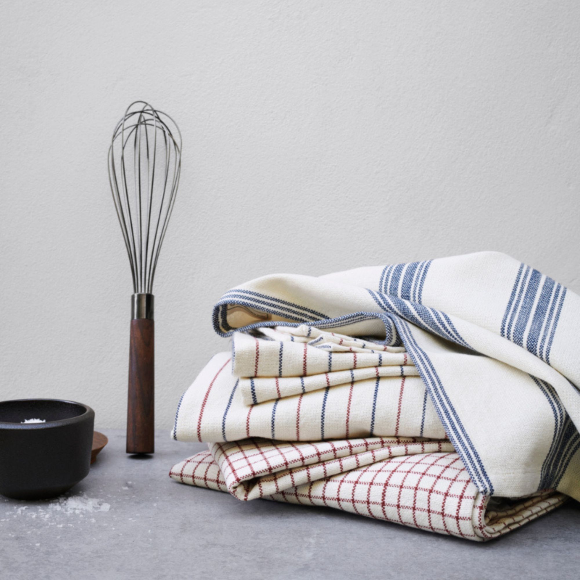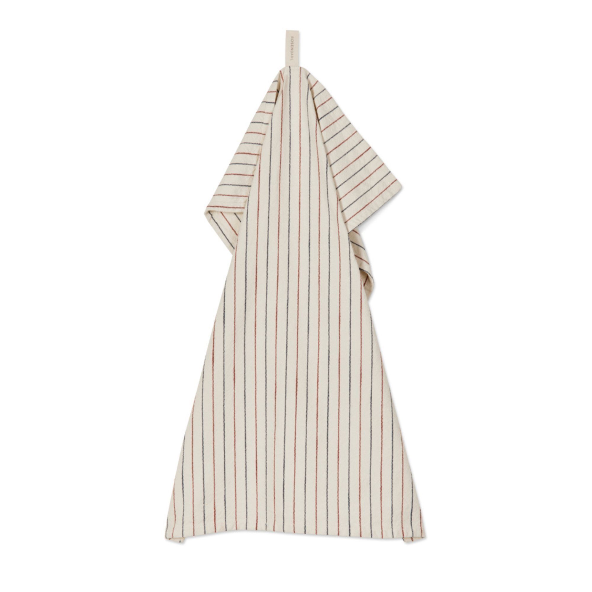 Tilføj både funktionalitet og stil til dit køkken med dette fine viskestykke fra Rosendahl Textiles. Det minimalistiske design med smalle striber i blå og terracotta skaber et moderne og nordisk udtryk, der passer perfekt ind i det stilrene køkken.
