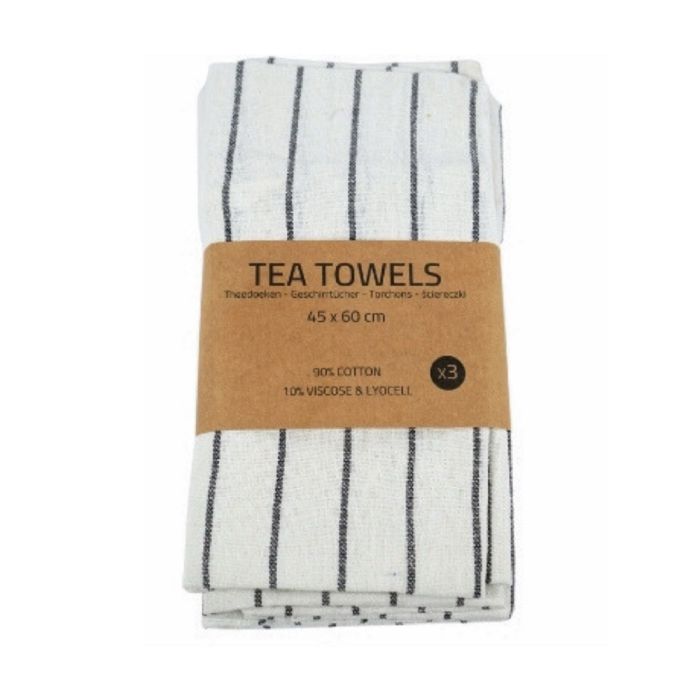 Opgrader dit køkken med disse klassiske viskestykker i 3-pak. De hvide viskestykker med klassiske brede sorte striber kombinerer et tidløst design med høj funktionalitet, så du får både æstetik og samtidig med du klare hverdagens pligter.
